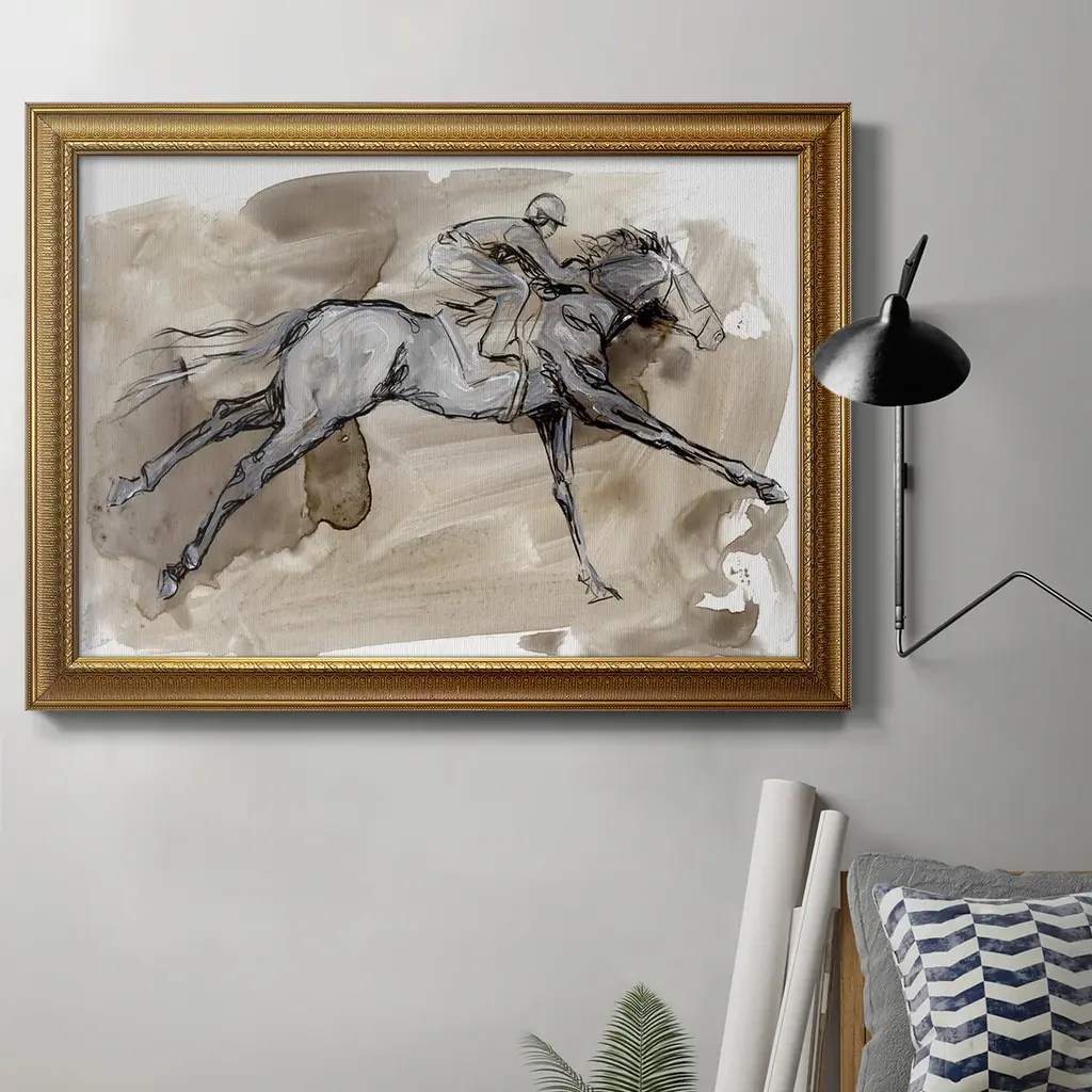 Off To The Races Ii Premium Framed Canvas- Ready To Hang - 18x27 - Gold