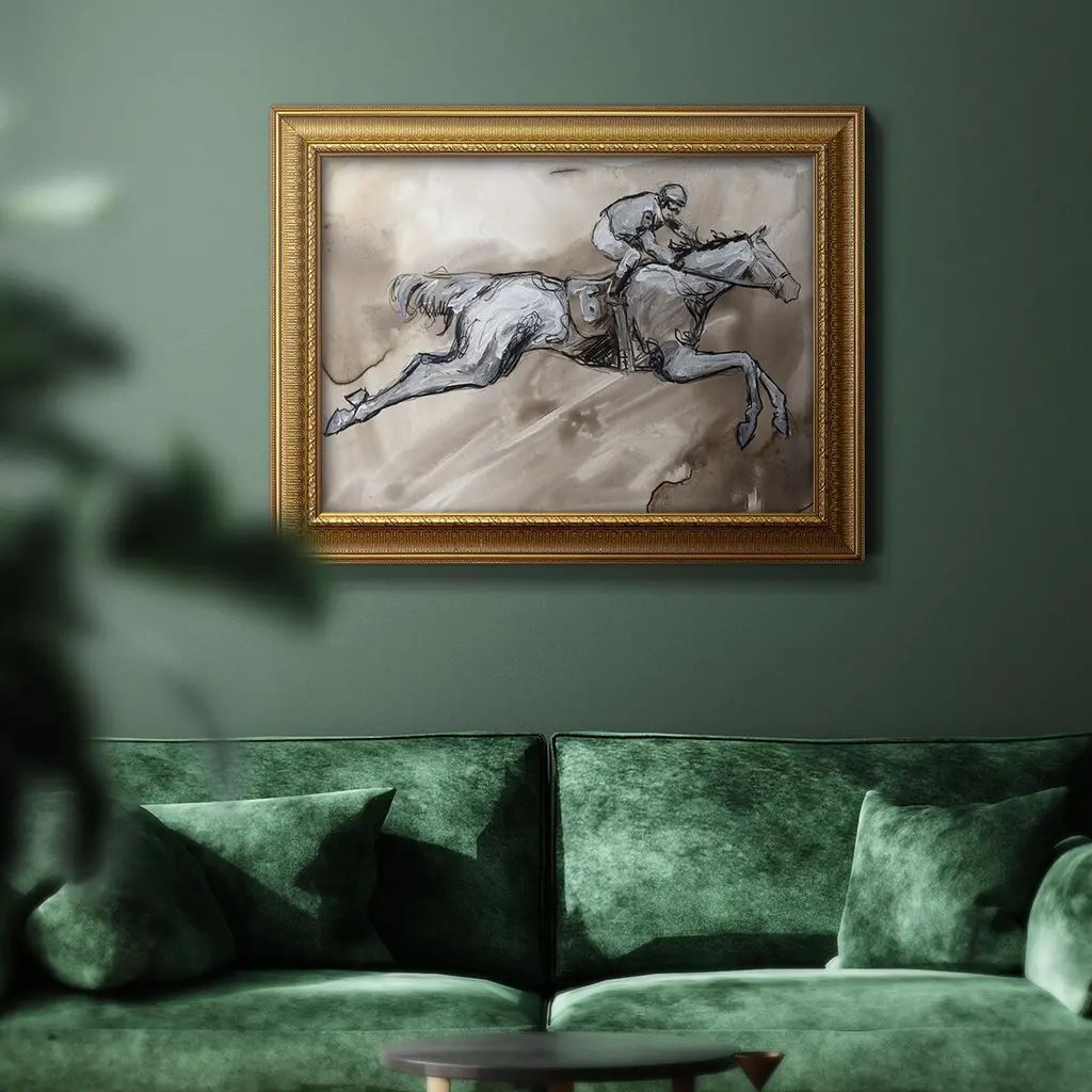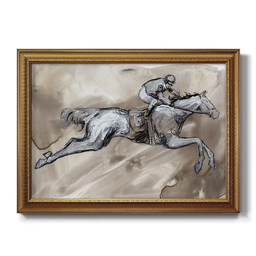 Off To The Races Ii Premium Framed Canvas- Ready To Hang - 24x36 - Gold