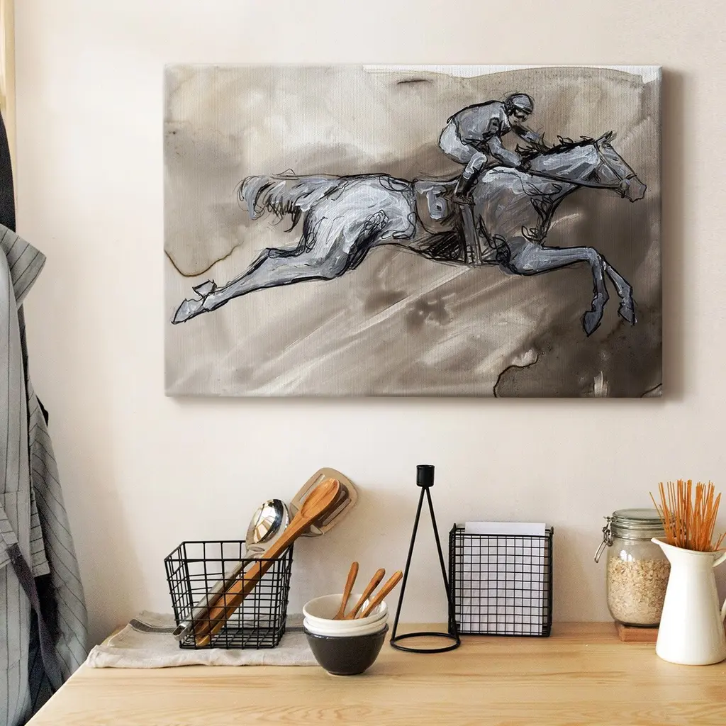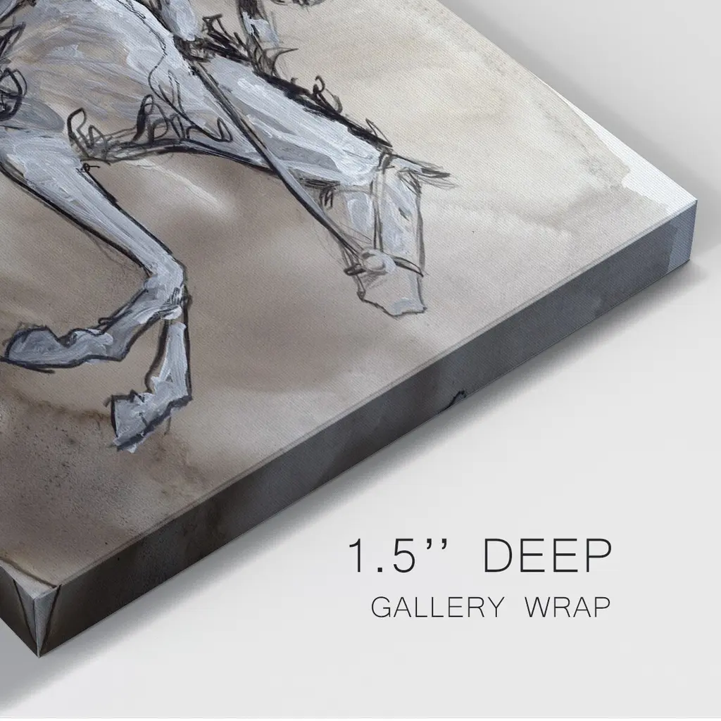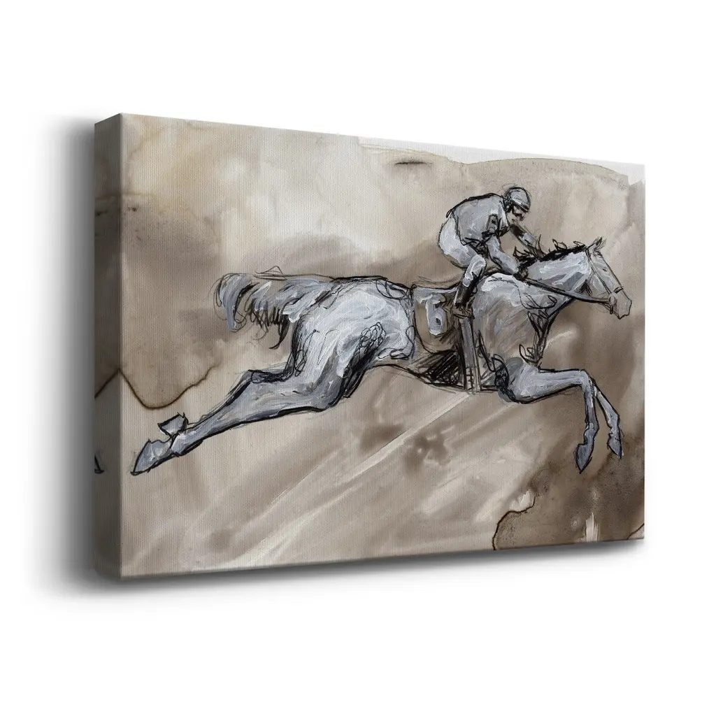 Off to the Races II Premium Gallery Wrapped Canvas - Ready to Hang A premium hand stretched gallery wrapped canvas print created to last. Featuring a beveled a solid wood stretcher bar, each piece comes ready to hand 6 SIZES AVAILABLE 8''X12'' - Overall Size 12''X18'' - Overall Size 18''X27'' - Overall Size 24''x36'' - Overall Size 32''x48'' - Overall Size 40''x60'' - Overall Size Each piece is made to order. Built to Last Each piece comes ready to hang Solid wood stretcher Fade and Water resistant Made domestically
