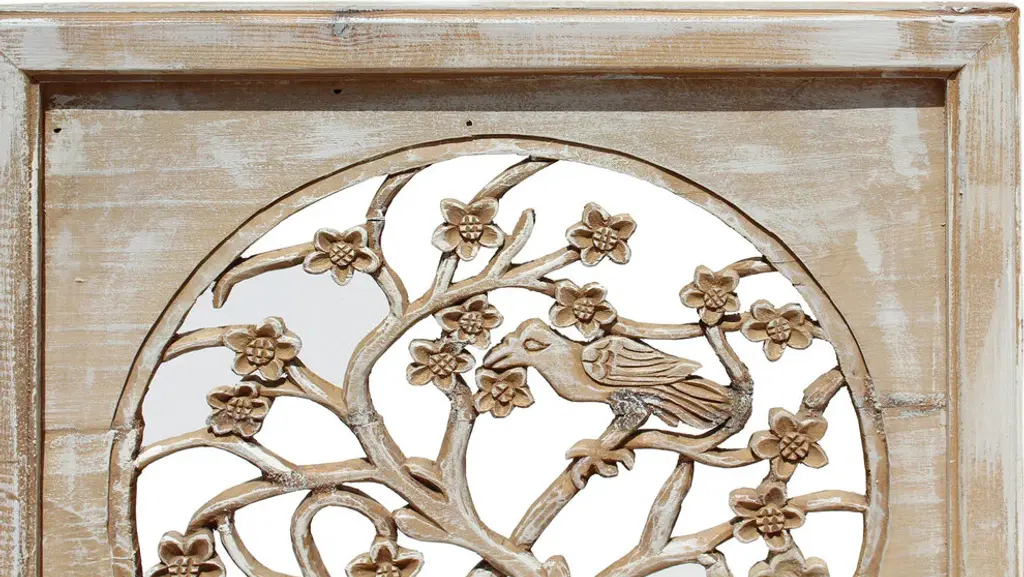 Off White Wash Lacquer Chinese Birds And Flowers Square Wall Panel Cs4004