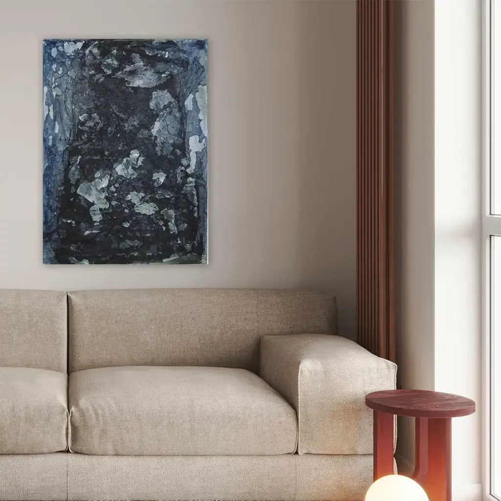 Abstract expressionism defines this painting, a stylistic trait that underlines its belonging to the solo exhibition artist Cecilia Chiavistelli organized in Hluboka, Czech Republic. All paintings from this series are distinguished by the same indulgence in light flashes that only interrupt the depth of the general dark-toned motif. Supplied with an authenticity certificate.