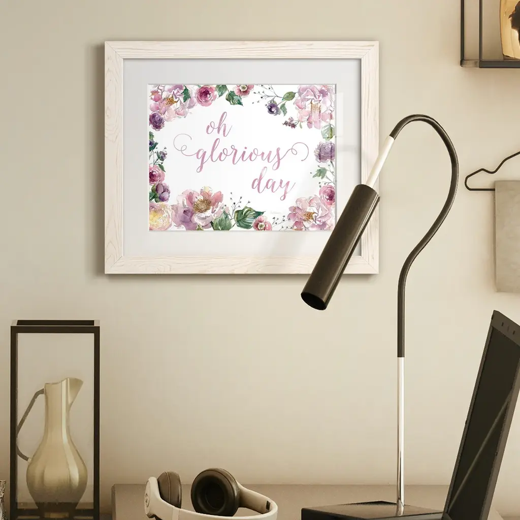 Oh Glorious Day-Premium Framed Print - Ready to Hang Framed in distressed wood and available in an array of sizes and colors Each piece is joined and assembled by hand and comes ready to hang 2 INCH BEVELED MATTE BOARD PLEXIGLASS COVERING READY TO HANG MADE IN THE USA SOLID WOOD FRAME MADE IN USA FADE RESISTANT GICLEE PRINTING on Canvas or Paper