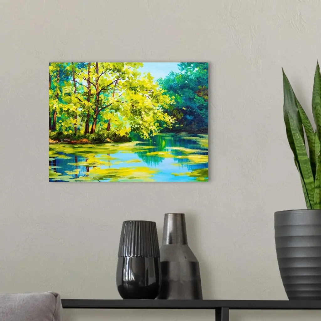 Oil Painting Of A Lake In A Forest