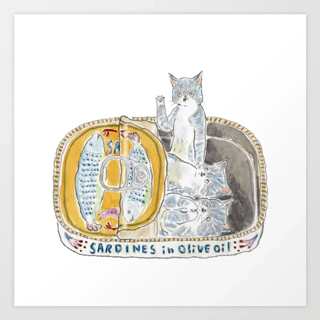 Oiled Sardine Cats Art Print