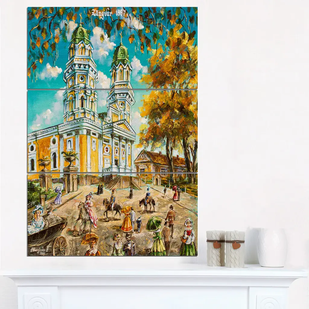 "Old Church" Glossy Metal Wall Art, 3 Panels, 28"x36"