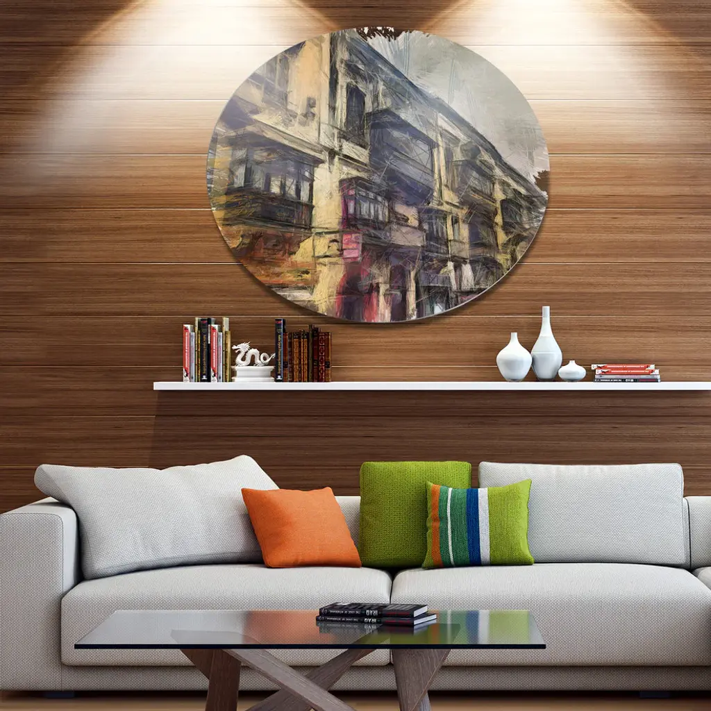 Bring Contemporary Abstraction to your home with this large Circle Metal wall art. This Old City Street Watercolor Painting Metal Artwork makes it the focal point of any room or office. - White Gloss Coating ensures colors are extra vibrant with light reflection.- Aluminum grade Sheet Metal with 1 inch mounting frame on the back giving the illusion that the artwork is floating on the wall..- Mounting Brackets are included along with instructions.- High Quality Digital images are created directly into a glossy aluminum panel producing a stunning and captivating print into the glossy finish of the metal.- Water, Fire and Scratch resistant HD Aluminum panels.- Looks better than any photo paper and guaranteed to last at least 20 years- Easy to clean with a microfiber cloth. Colors are far superior to regular Canvas Art. - Easy to Hang