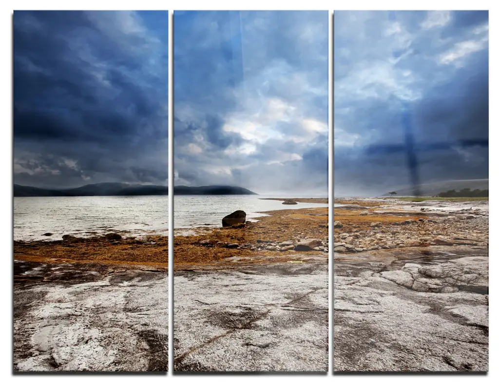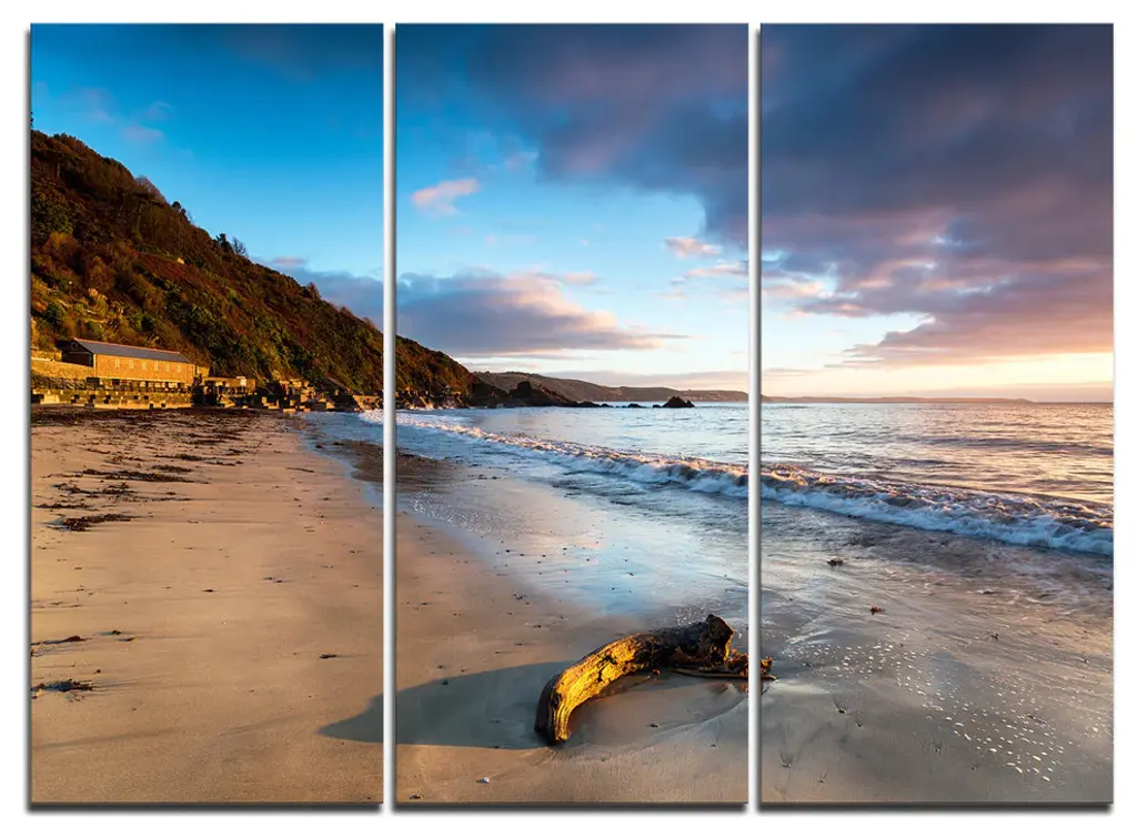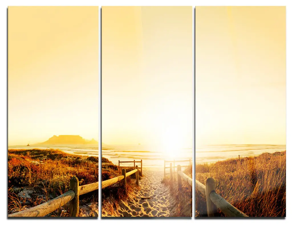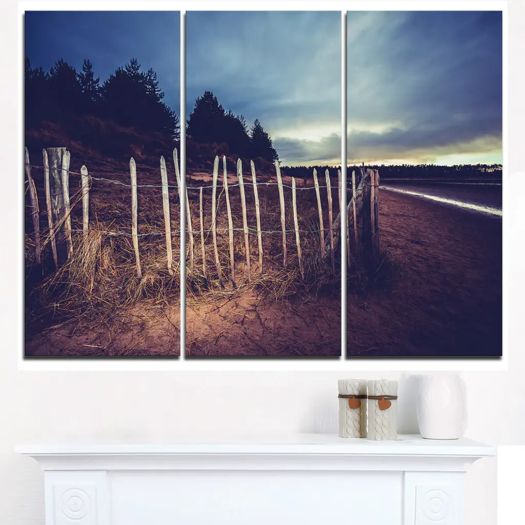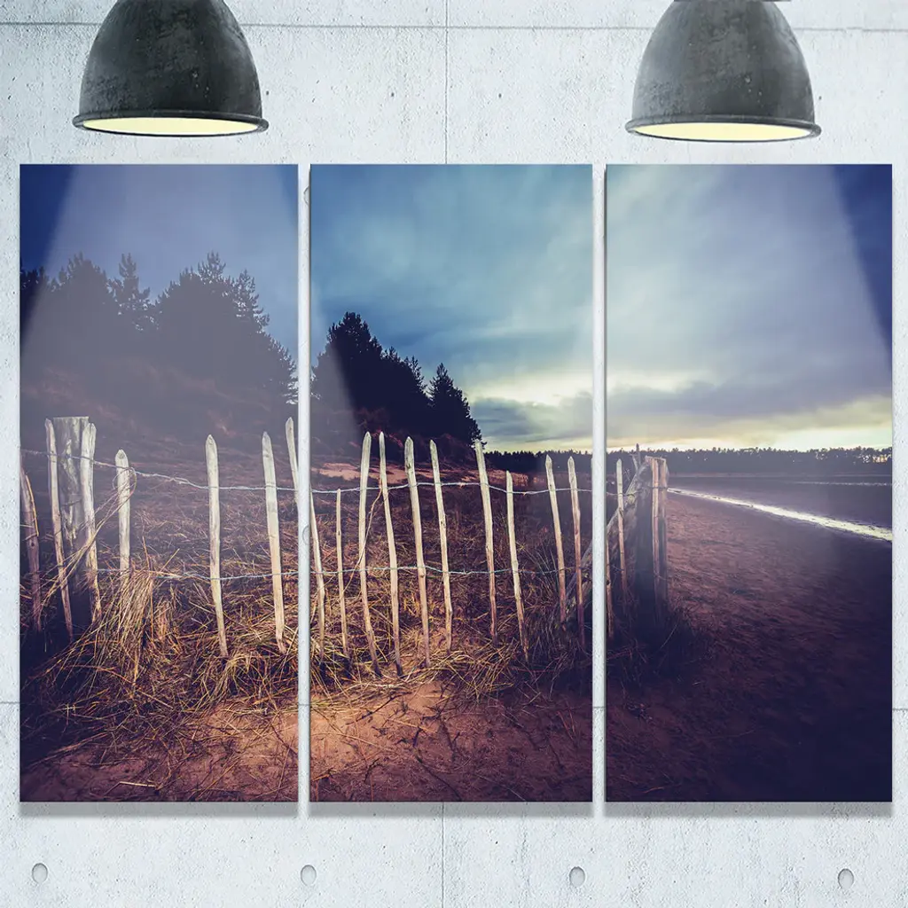 "Old Fence On Beach At Sunset" Metal Wall Art, 3 Panels, 36"x28"
