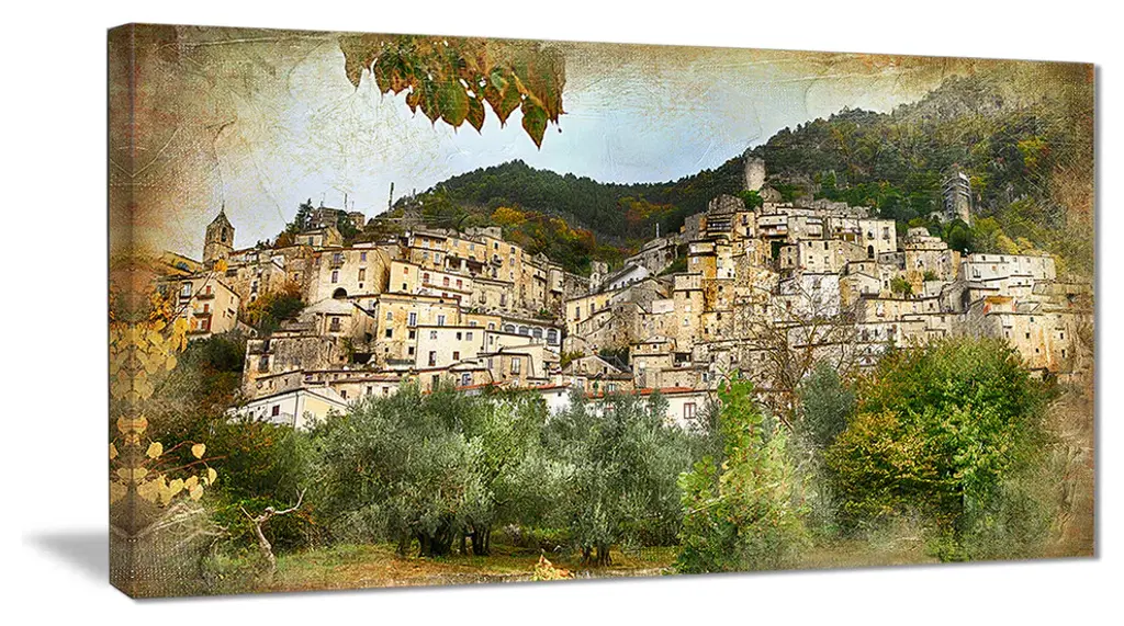 The Old Italian Villages canvas art print is sure to make an impression on anyone who sees it. This artwork is gallery wrapped around a 1-inch solid wood frame and arrives carefully packaged and entirely ready to hang on the wall. Design Art only uses the highest resolution and pigments to ensure a crisp colorful print that is never faded or pixelated. This artwork is sure to be a conversation starter in any home or office.