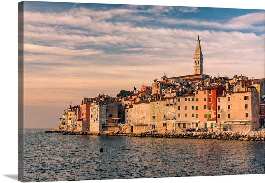 The Old Mediterranean Town at Sunrise canvas art print is sure to make an impression on anyone who sees it. This artwork is gallery wrapped around a 1-inch solid wood frame and arrives carefully packaged and entirely ready to hang on the wall. Design Art only uses the highest resolution and pigments to ensure a crisp colorful print that is never faded or pixelated. This artwork is sure to be a conversation starter in any home or office.