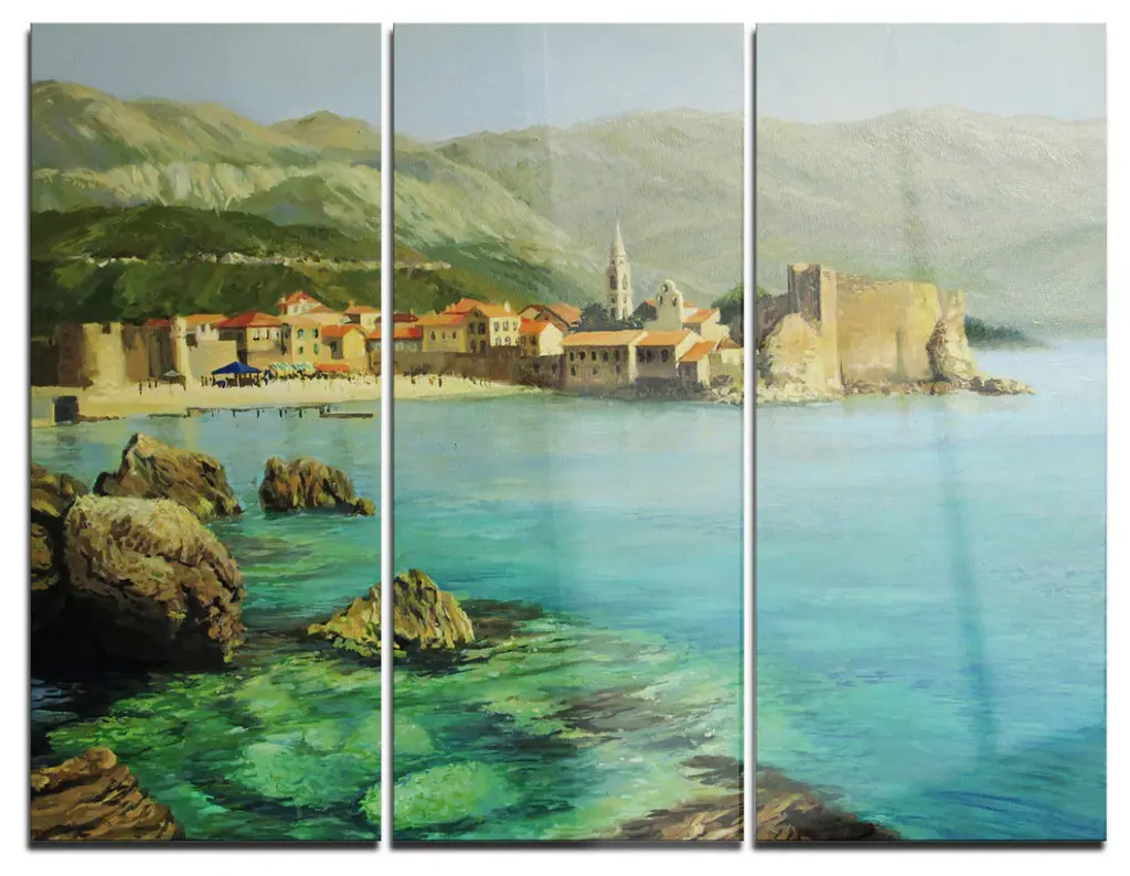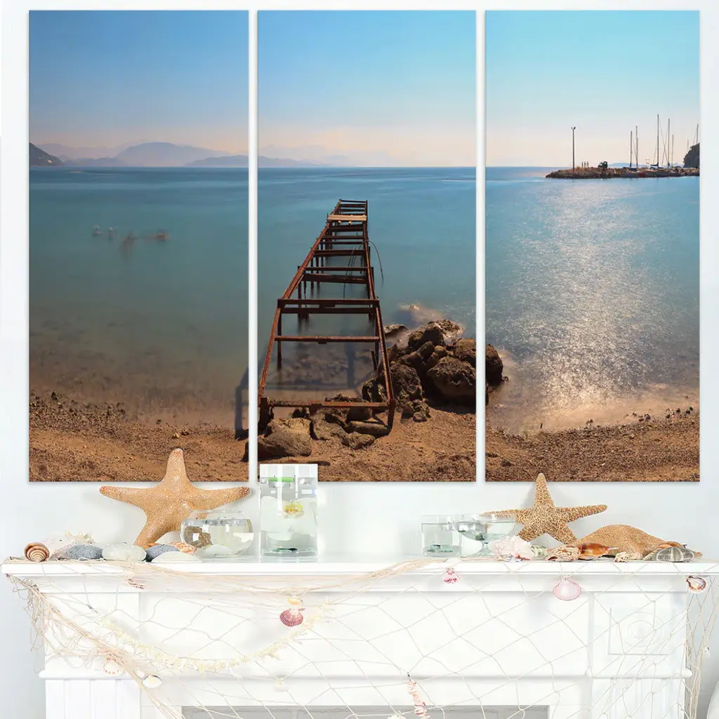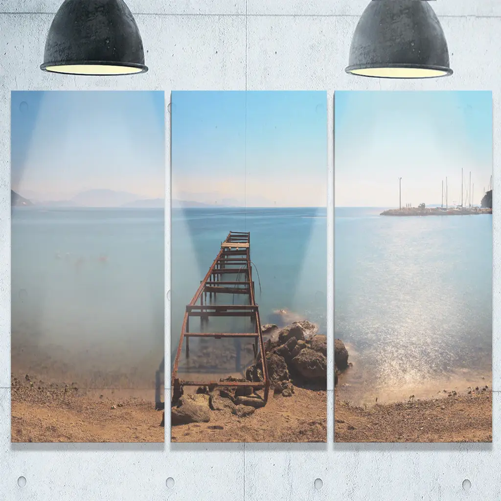 "Old Pier At Panoramic View" Wooden Metal Wall Art, 3 Panels, 36"x28"