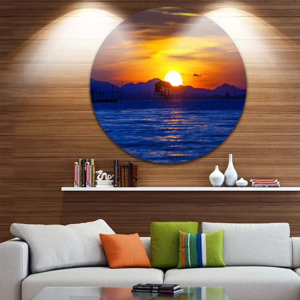 Bring Contemporary Abstraction to your home with this large Circle Metal wall art. This Old Wooden Pavilion in Sea Metal Artwork makes it the focal point of any room or office. - White Gloss Coating ensures colors are extra vibrant with light reflection.- Aluminum grade Sheet Metal with 1 inch mounting frame on the back giving the illusion that the artwork is floating on the wall..- Mounting Brackets are included along with instructions.- High Quality Digital images are created directly into a glossy aluminum panel producing a stunning and captivating print into the glossy finish of the metal.- Water, Fire and Scratch resistant HD Aluminum panels.- Looks better than any photo paper and guaranteed to last at least 20 years- Easy to clean with a microfiber cloth. Colors are far superior to regular Canvas Art. - Easy to Hang