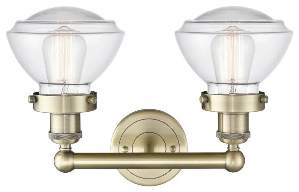 Olean 2-Light 16" Bath Vanity Light, Antique Brass Finish, Clear Shade