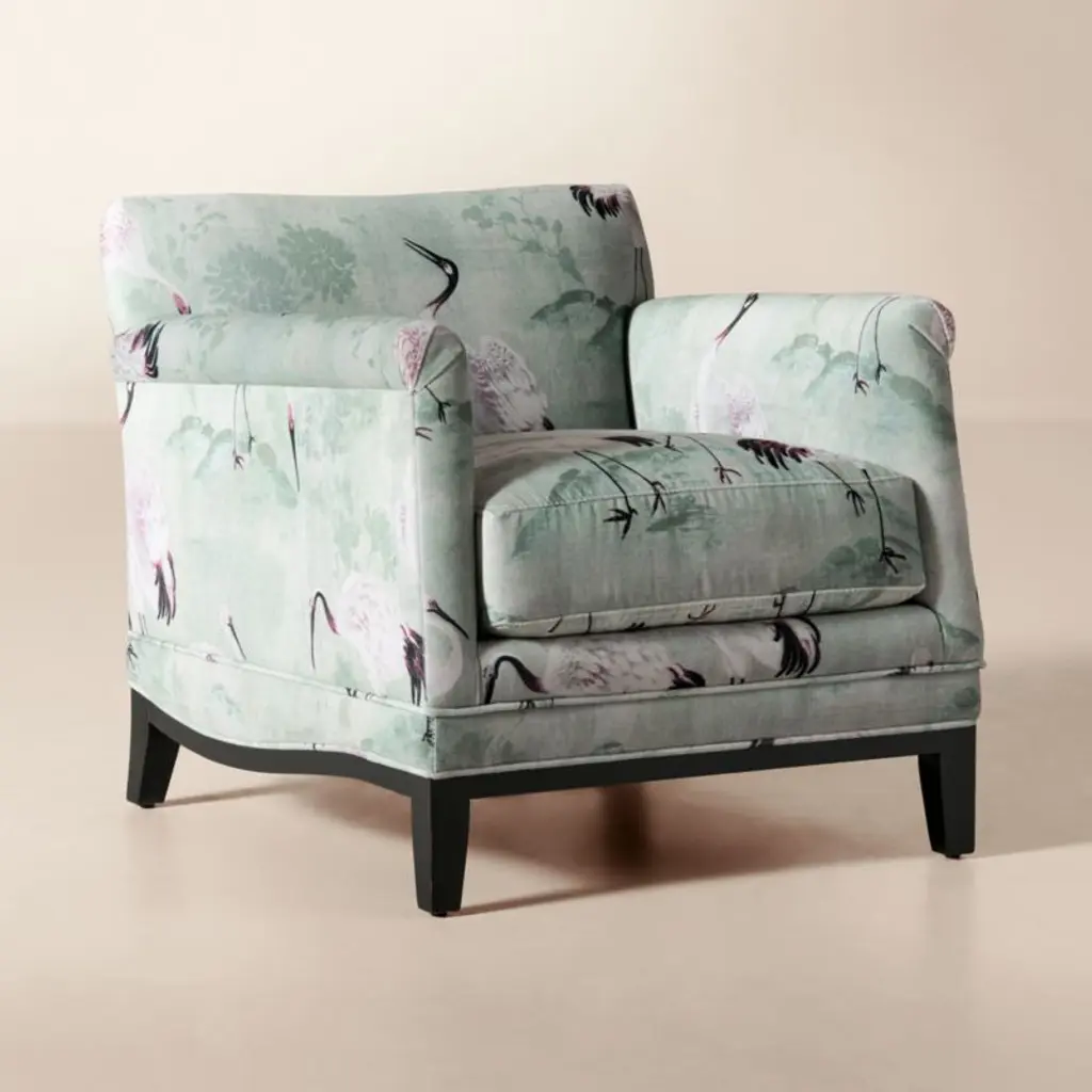 Olson Crane Print Performance Velvet Accent Chair