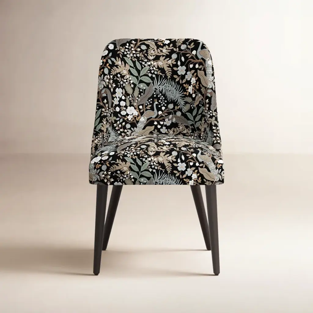 Assembled in North Carolina, petite velvet chair by NYC-based designer Brett Beldock pays homage to vintage French club chairs. Flanked by rolled arms, the chair is upholstered in a plush performance velvet with an artful crane print. The exclusive print is designed in partnership with JB Martin, an award-winning South Carolina textile mill that has been family-run for six generations. CB2 exclusive.
