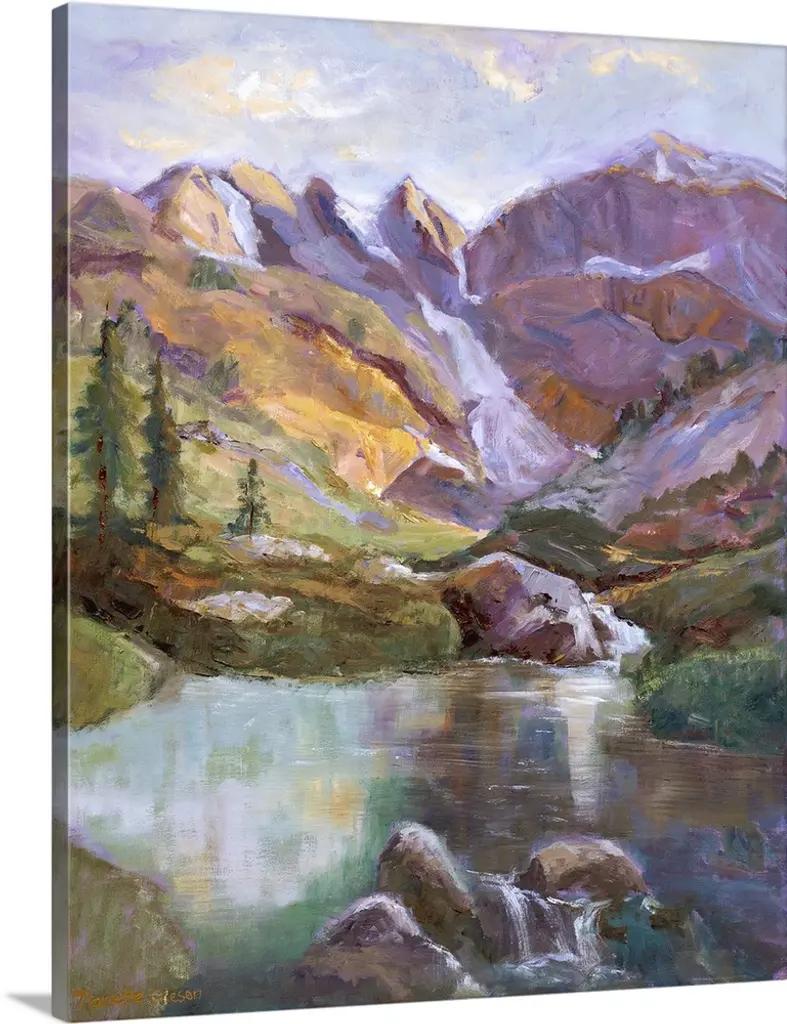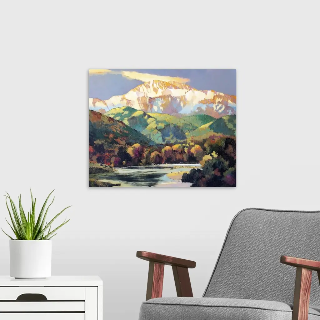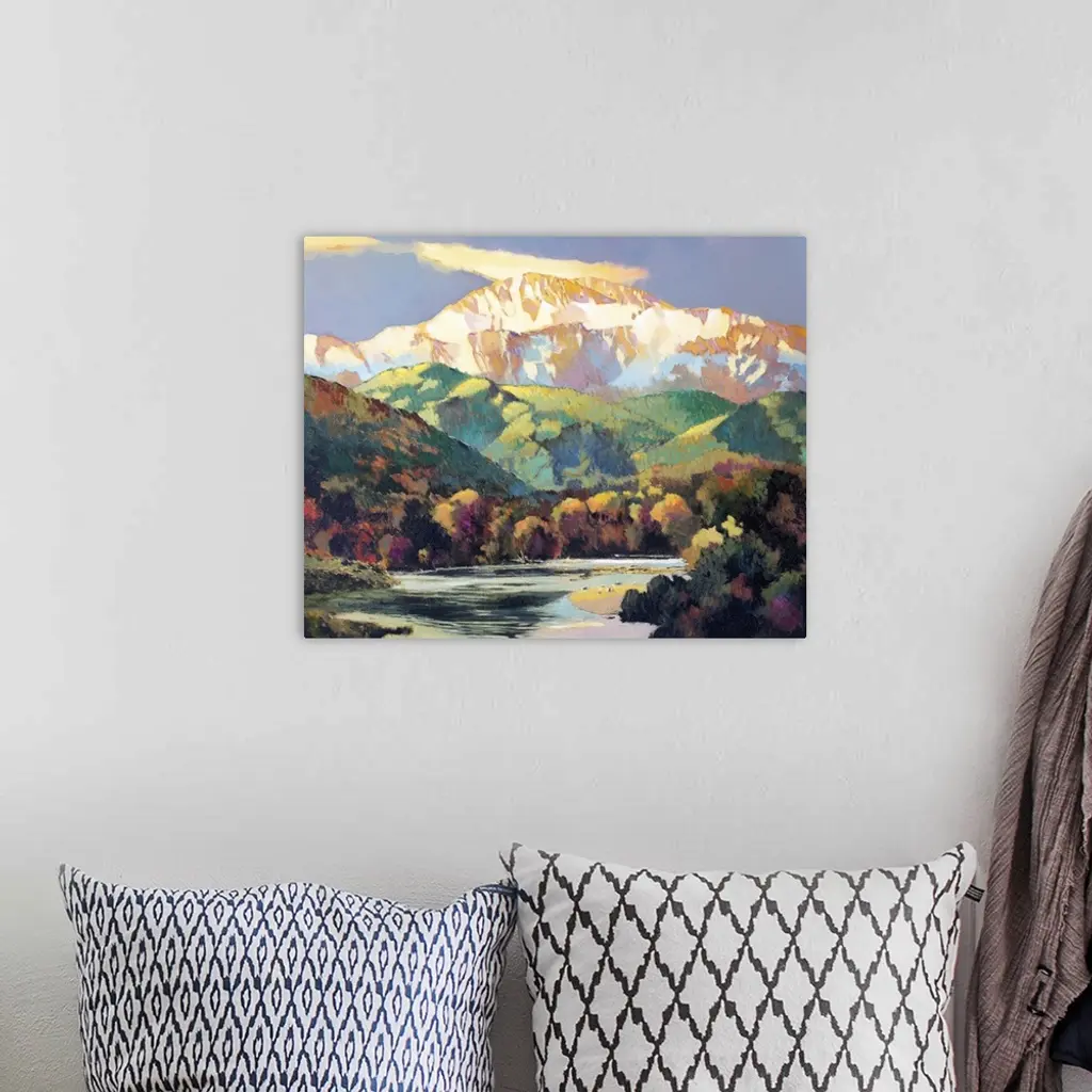 Contemporary painting of a snowy mountain range in Olympic National Park, Washington.