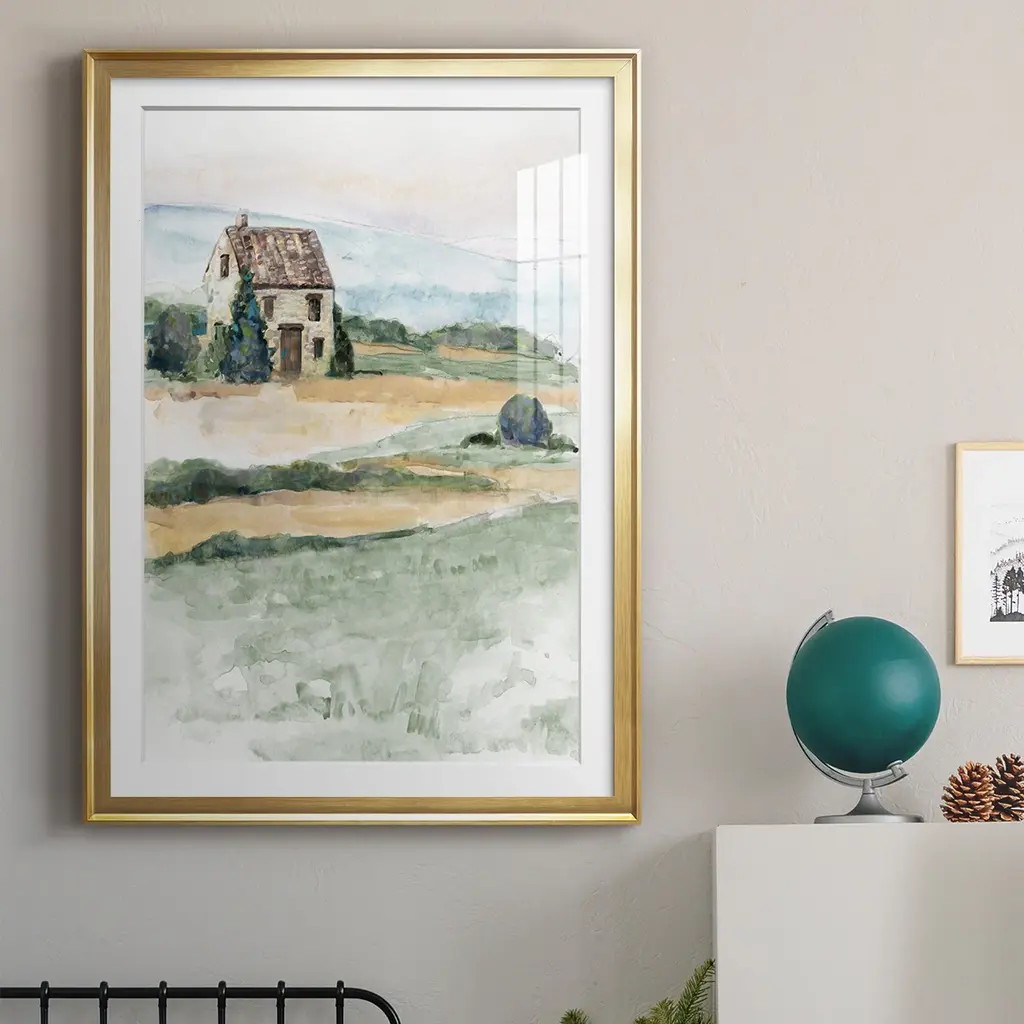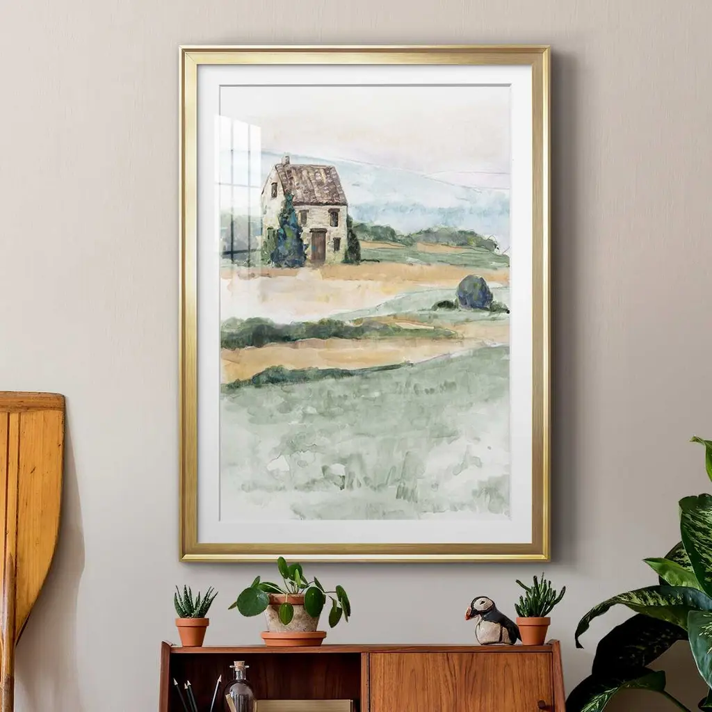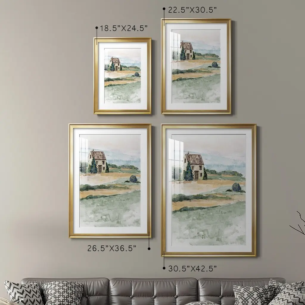 On the Countryside I Premium Framed Print - Ready to Hang A Premium Framed Print created to last. Framed in distressed wood and available in an array of sizes and colors Featuring a beveled a solid wood stretcher bar, each piece comes ready to hand 4 SIZES AVAILABLE 30.5''X42.5'' - Overall Size 26.5'X36.5'' - Overall Size 22.5''x30.5'' - Overall Size 18.5''x24.5'' - Overall Size Each piece is made to order. Each piece comes with hanging hardware. Made in the USA Ready to Hang Giclee Paper Print Acrylic Glass Beveled Matt Board