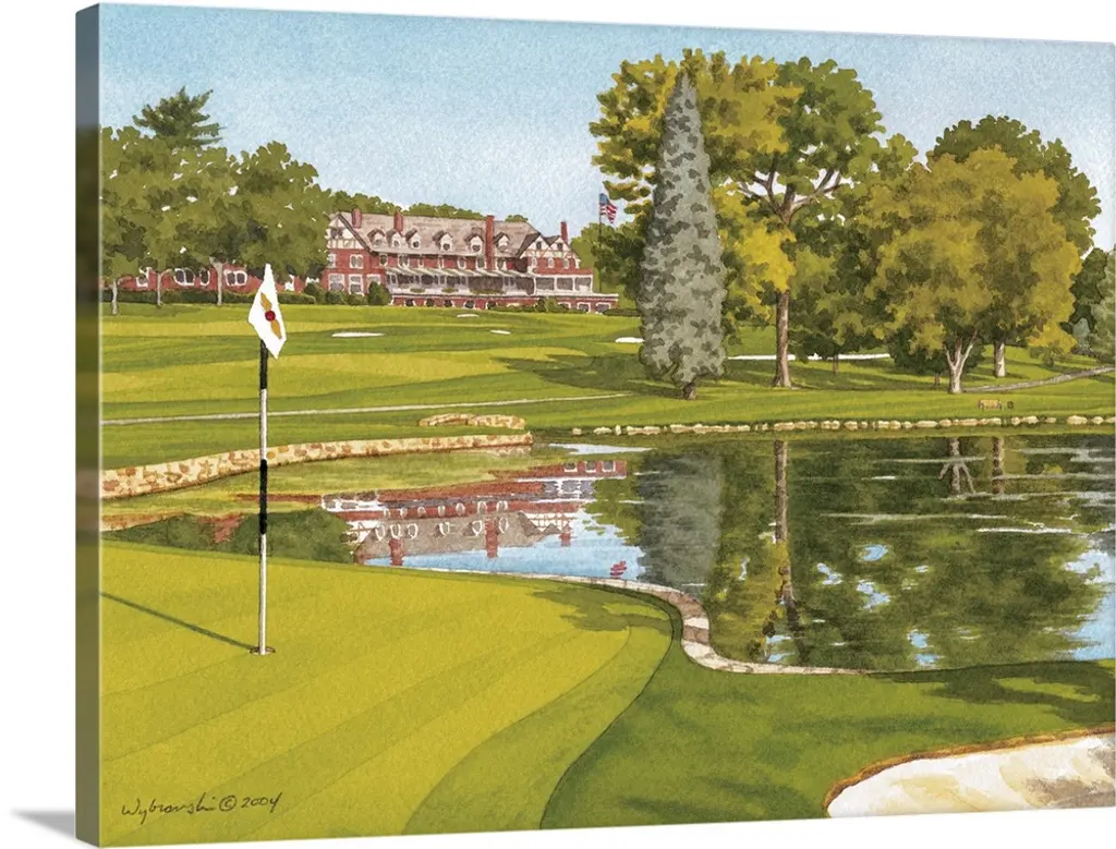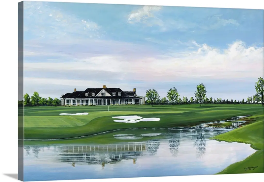 Sunday brunch at Sargo; the restaurant on the grounds of the magnificent Saratoga National Golf Club. Enjoy the beauty of the rolling greens and mirror like reflections every day of the year. The canvas painting will arrive stretched and ready for you to frame to match your decor.