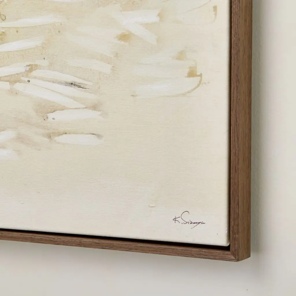 Captured with roughly applied paint, Ksenia Sizaya's "Ondula" is inspired by the calming flow of a river. Linear textures were created using spatulas, calling to mind delicate shadows and reflections on the water's surface. "These patterns evoke the feeling of ripples and currents in the underwater realm," Sizaya explains. CB2 exclusive.Ksenia Sizaya is a Montreal-based artist who was trained in St. Petersburg, Russia, and completed her master's degree in graphic art. Sizaya says her art is influenced by abstract expressionism and modernism. "I've always been a creative person, even as a small child. Design and art have always been a major part of my life." The artist is inspired by city life imagery and the outdoors.