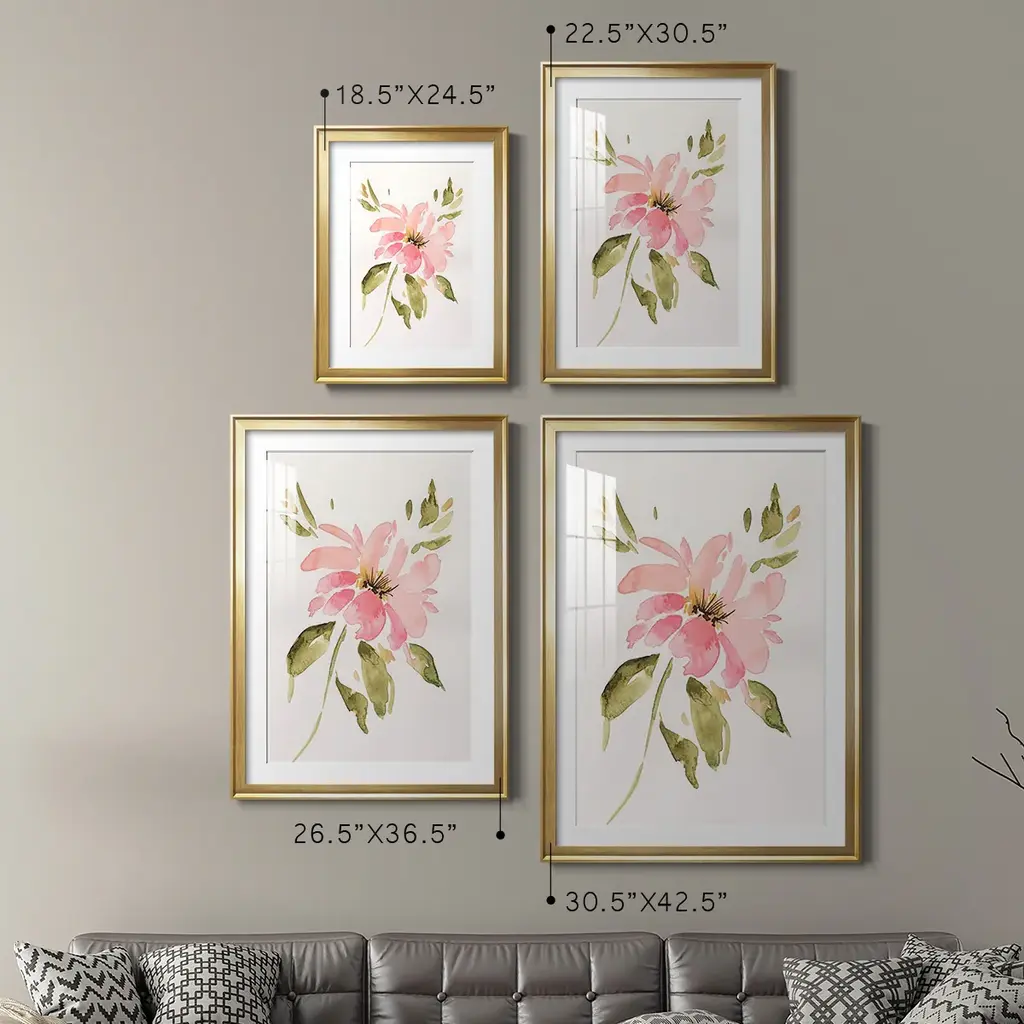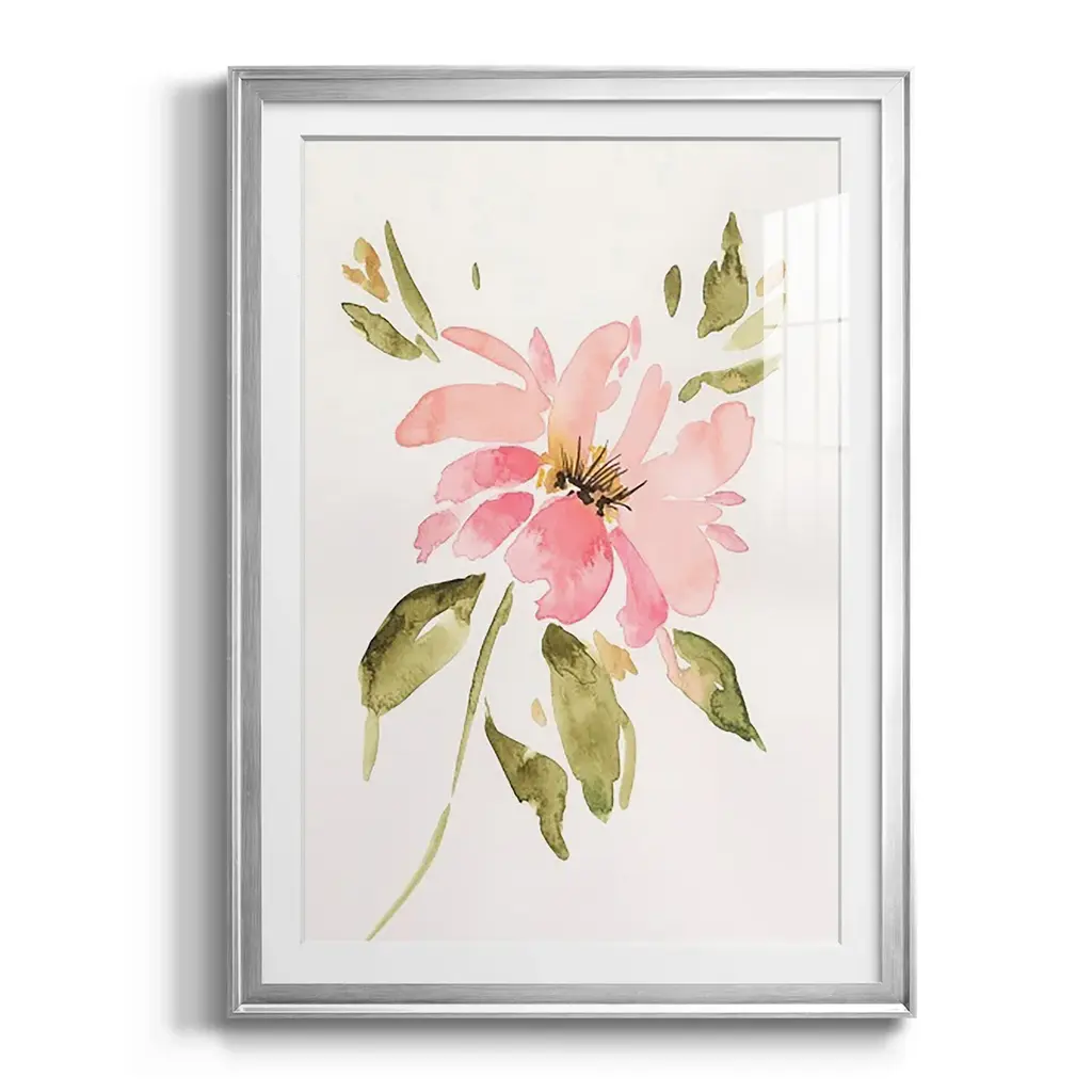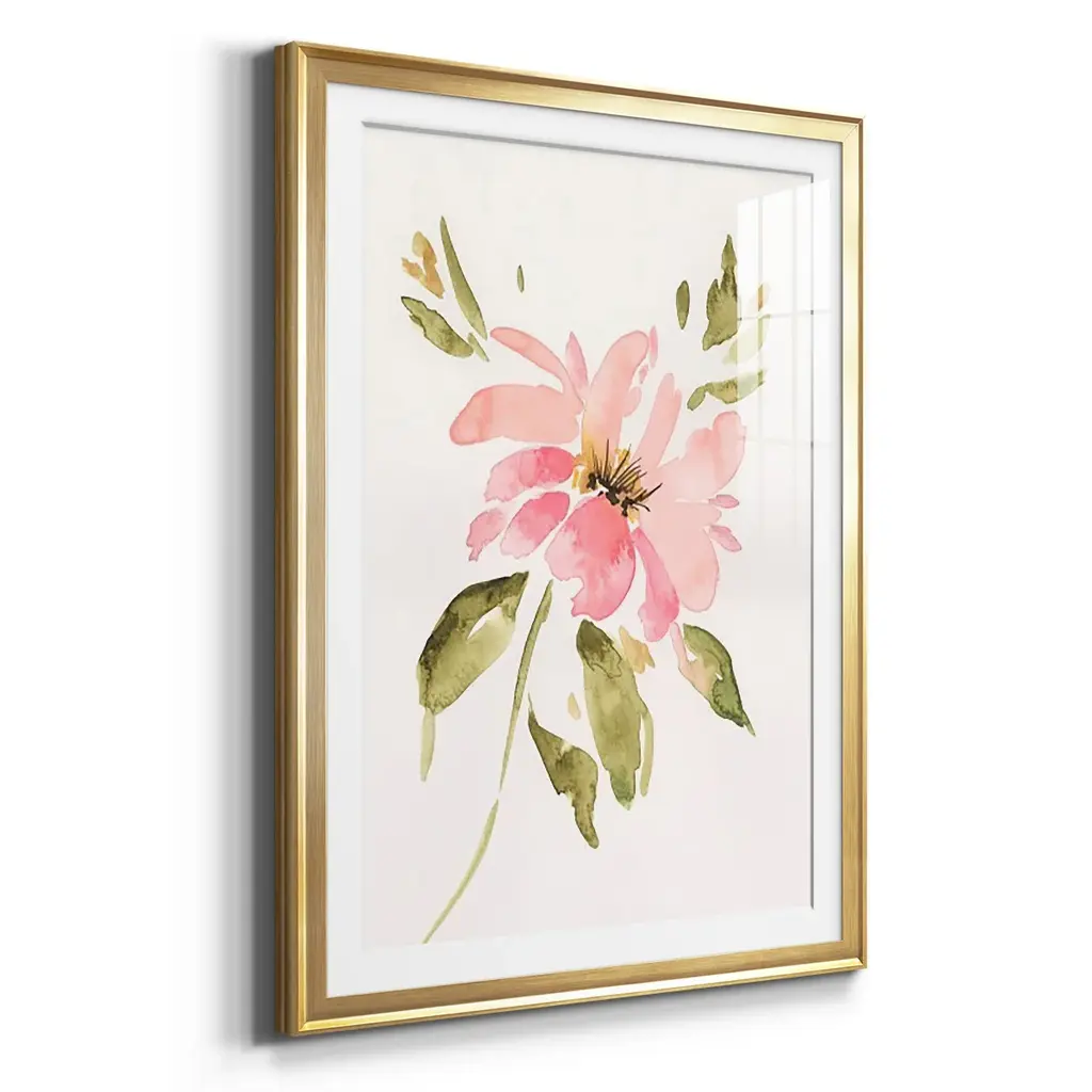 One Pink Bloom I Premium Framed Print - Ready to Hang A Premium Framed Print created to last. Framed in distressed wood and available in an array of sizes and colors Featuring a beveled a solid wood stretcher bar, each piece comes ready to hand 4 SIZES AVAILABLE 30.5''X42.5'' - Overall Size 26.5'X36.5'' - Overall Size 22.5''x30.5'' - Overall Size 18.5''x24.5'' - Overall Size Each piece is made to order. Each piece comes with hanging hardware. Made in the USA Ready to Hang Giclee Paper Print Acrylic Glass Beveled Matt Board