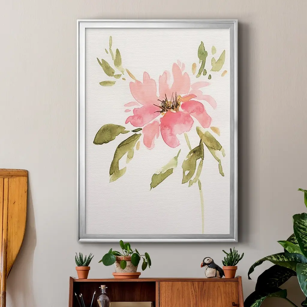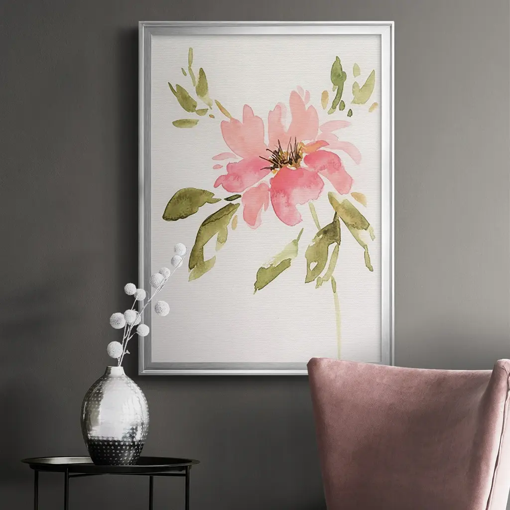 One Pink Bloom II Premium Framed Print - Ready to Hang A Premium Framed Print created to last. Framed in distressed wood and available in an array of sizes and colors Featuring a beveled a solid wood stretcher bar, each piece comes ready to hand 4 SIZES AVAILABLE 30.5''X42.5'' - Overall Size 26.5'X36.5'' - Overall Size 22.5''x30.5'' - Overall Size 18.5''x24.5'' - Overall Size Each piece is made to order. Each piece comes with hanging hardware. Made in the USA Ready to Hang
