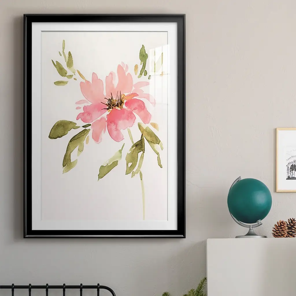 One Pink Bloom II Premium Framed Print - Ready to Hang A Premium Framed Print created to last. Framed in distressed wood and available in an array of sizes and colors Featuring a beveled a solid wood stretcher bar, each piece comes ready to hand 4 SIZES AVAILABLE 30.5''X42.5'' - Overall Size 26.5'X36.5'' - Overall Size 22.5''x30.5'' - Overall Size 18.5''x24.5'' - Overall Size Each piece is made to order. Each piece comes with hanging hardware. Made in the USA Ready to Hang Giclee Paper Print Acrylic Glass Beveled Matt Board