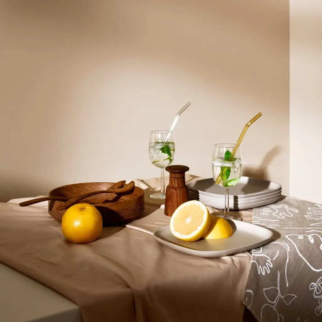 The Onnenmaa tea towel/placemat by Saana ja Olli features an organic pattern formed by human figures, plants and other elements of nature. Painted with loose brushstrokes, Onnenmaa (”Arcadia”) sketches a dream-like safe space from the unstable world situation. All Saana ja Olli products are made from durable 100% hemp fabric and they are suitable for everyday life. The products are transparently manufactured in Finland.