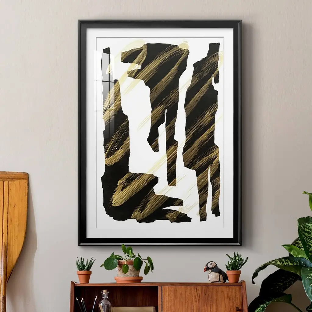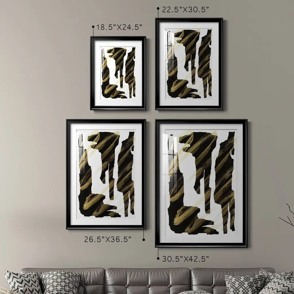 Onyx Obelisks III Premium Framed Print - Ready to Hang A Premium Framed Print created to last. Framed in distressed wood and available in an array of sizes and colors Featuring a beveled a solid wood stretcher bar, each piece comes ready to hand 4 SIZES AVAILABLE 30.5''X42.5'' - Overall Size 26.5'X36.5'' - Overall Size 22.5''x30.5'' - Overall Size 18.5''x24.5'' - Overall Size Each piece is made to order. Each piece comes with hanging hardware. Made in the USA Ready to Hang Giclee Paper Print Acrylic Glass Beveled Matt Board
