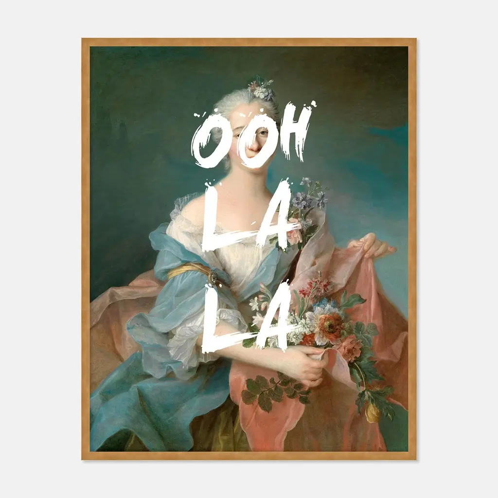 DESCRIPTION: Ooh La La by Lara Fowler in Gold Framed Paper, Small Art Print SPECIFICATIONS: Type: Framed Paper. Framed Size (in): 19x24. Orientation: Vertical. Flush/Float/Matted: Flush. Frame Color: Gold. Hanging Hardware: Picture Perfect. FRAMING: Each art work arrives framed and ready to hang. We use handmade frames with a plexiglass glazing front, because it offers less glare than standard glass. At this time, we only offer framed prints. ARTIST BIO: Lara Fowler is a British artist who creates quirky art prints with a twist.