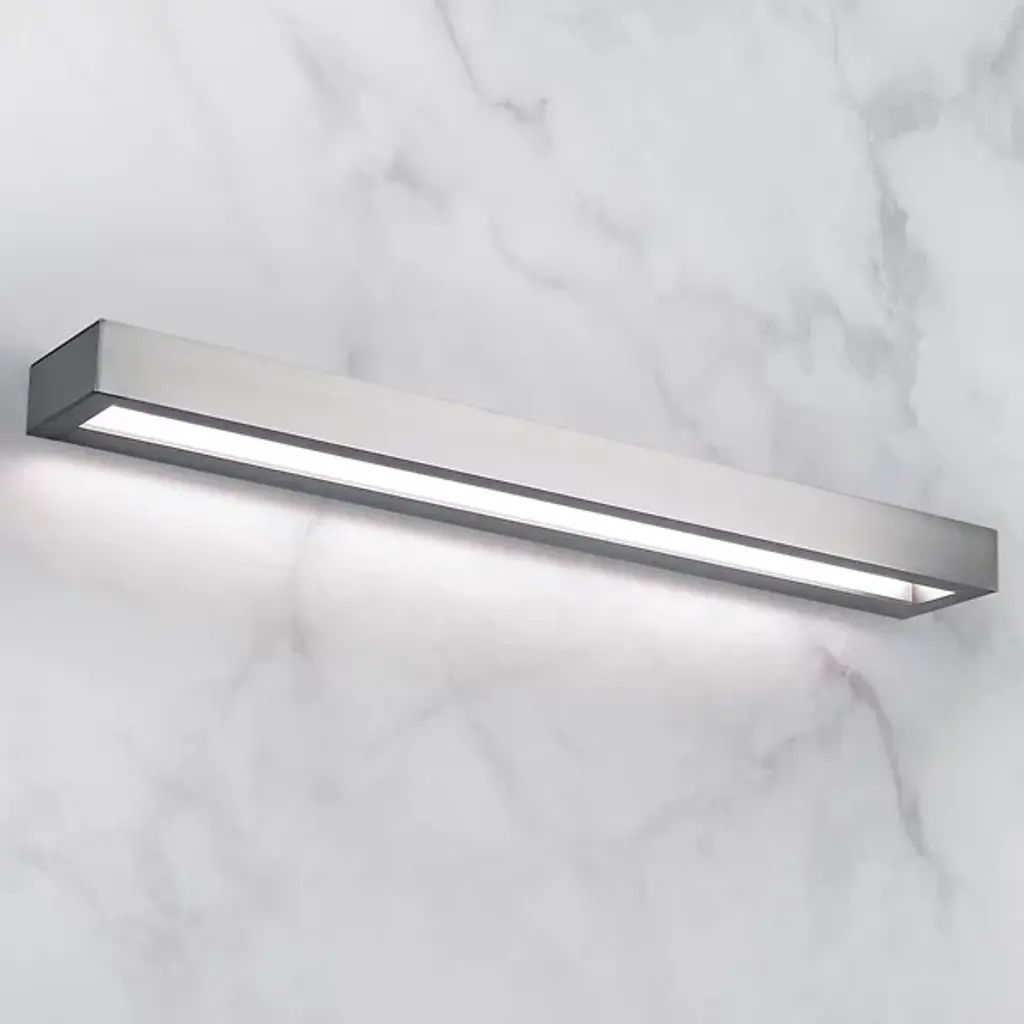 Beautiful, light-filled geometry. Match the ultra-refined personality of your bathroom with the clean contemporary design of the Open Bar LED Vanity Light from Modern Forms. While slender, this piece mounts vertically or horizontally, making for easy placement. Let the crisp edge of the aluminum structure line up with your bathroom's architectural features or complement your mirror. The structure surprises as it hides its brilliant LED light source behind a frosted acrylic diffuser. The LED light radiates through the top and bottom opening as a uniform glow that treats the eyes.