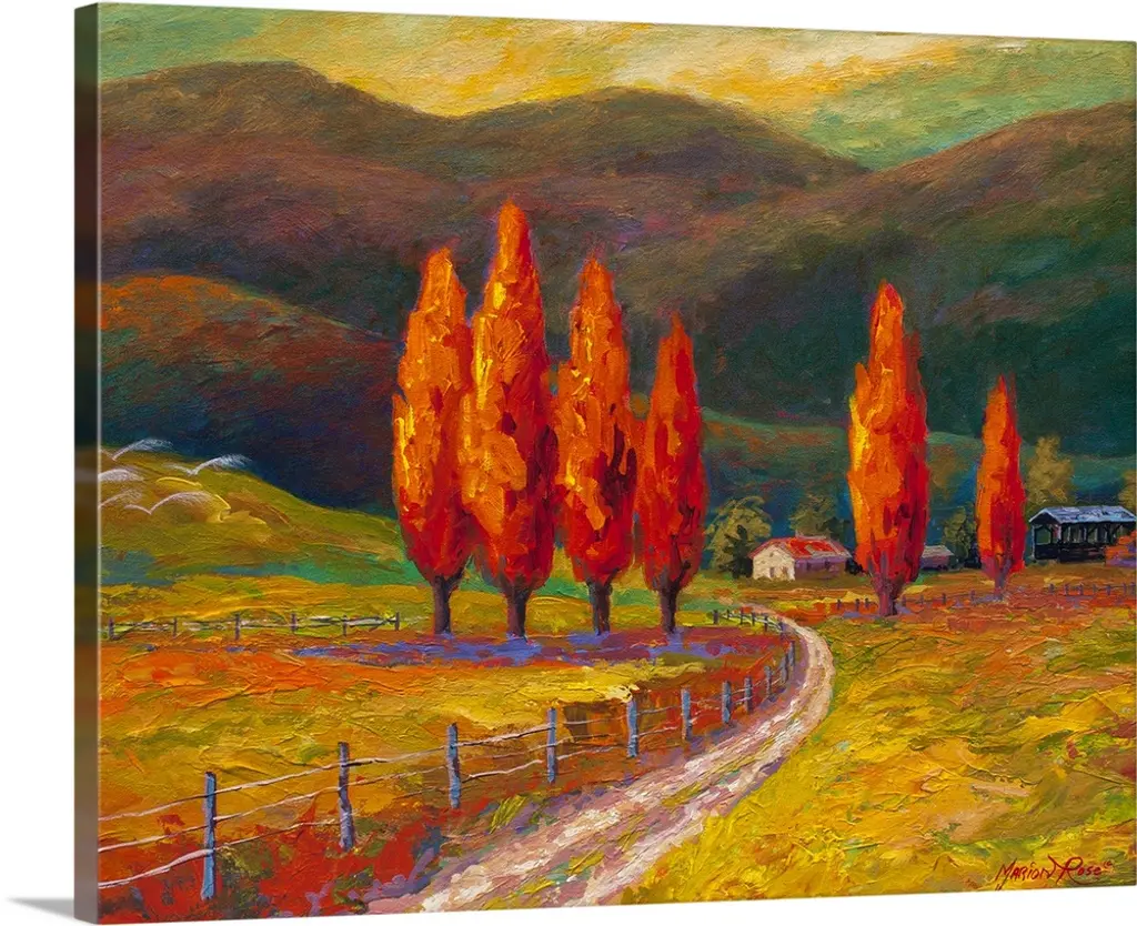 Artist Sally Rosenbaum’s work portrays the moments in time that we treasure and enjoy most – those that cause us to pause and reflect on the richness of life. Regarding the original painting of this giclée reproduction, she says, I love the effect of sunlight on surfaces and the richness of color in the environment in rural northern California.
