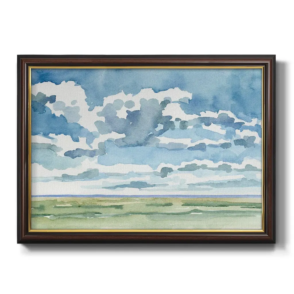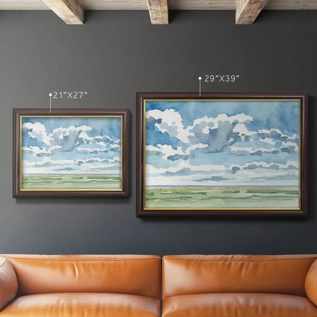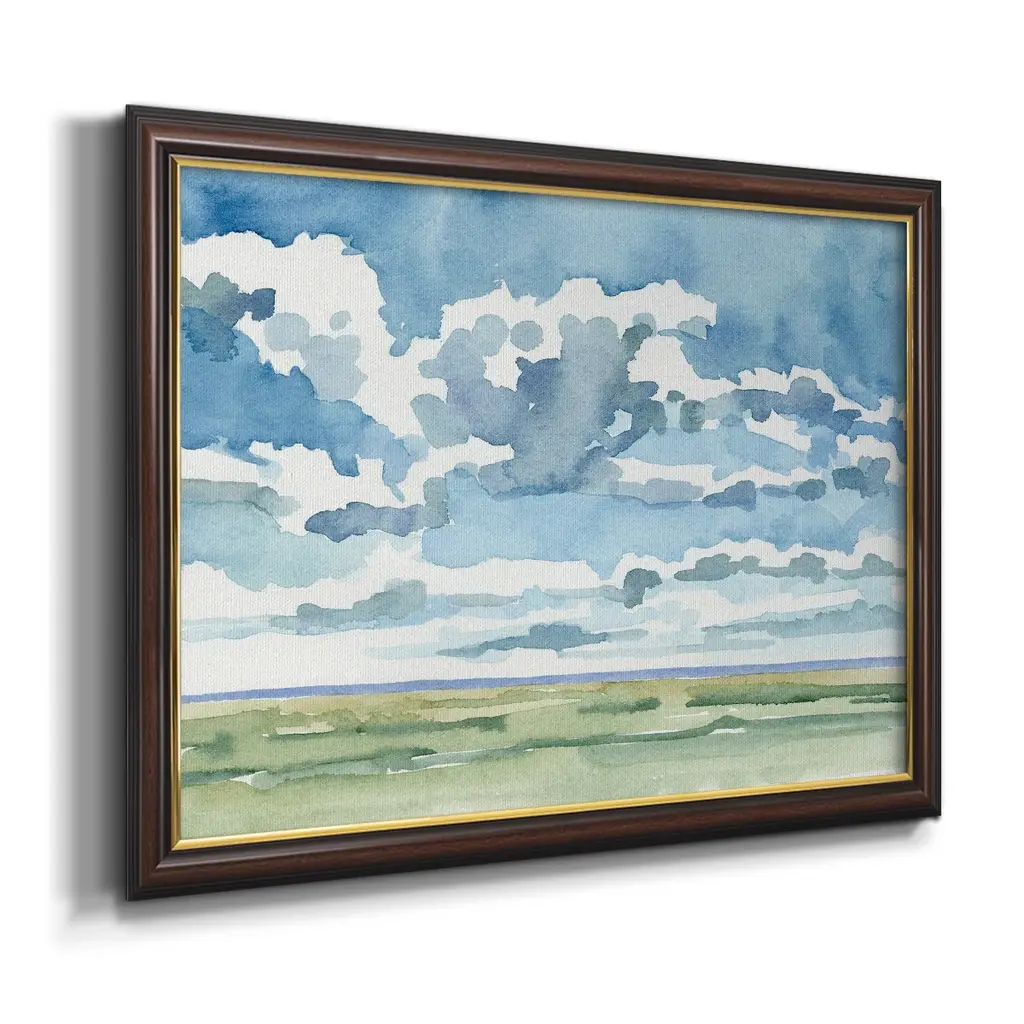 Open Sky Study I Premium Framed Canvas- Ready to Hang A Premium Framed Canvas created to last. Framed in distressed wood and available in an array of sizes and colors Featuring a beveled a solid wood stretcher bar, each piece comes ready to hand 3 SIZES AVAILABLE 16''X20'' - Overall Size 18'X27'' - Overall Size 24''x36'' - Overall Size Each piece is made to order. Each piece comes with hanging hardware. Made in the USA Ready to Hang Giclee Paper Print Acrylic Glass Beveled Matt Board