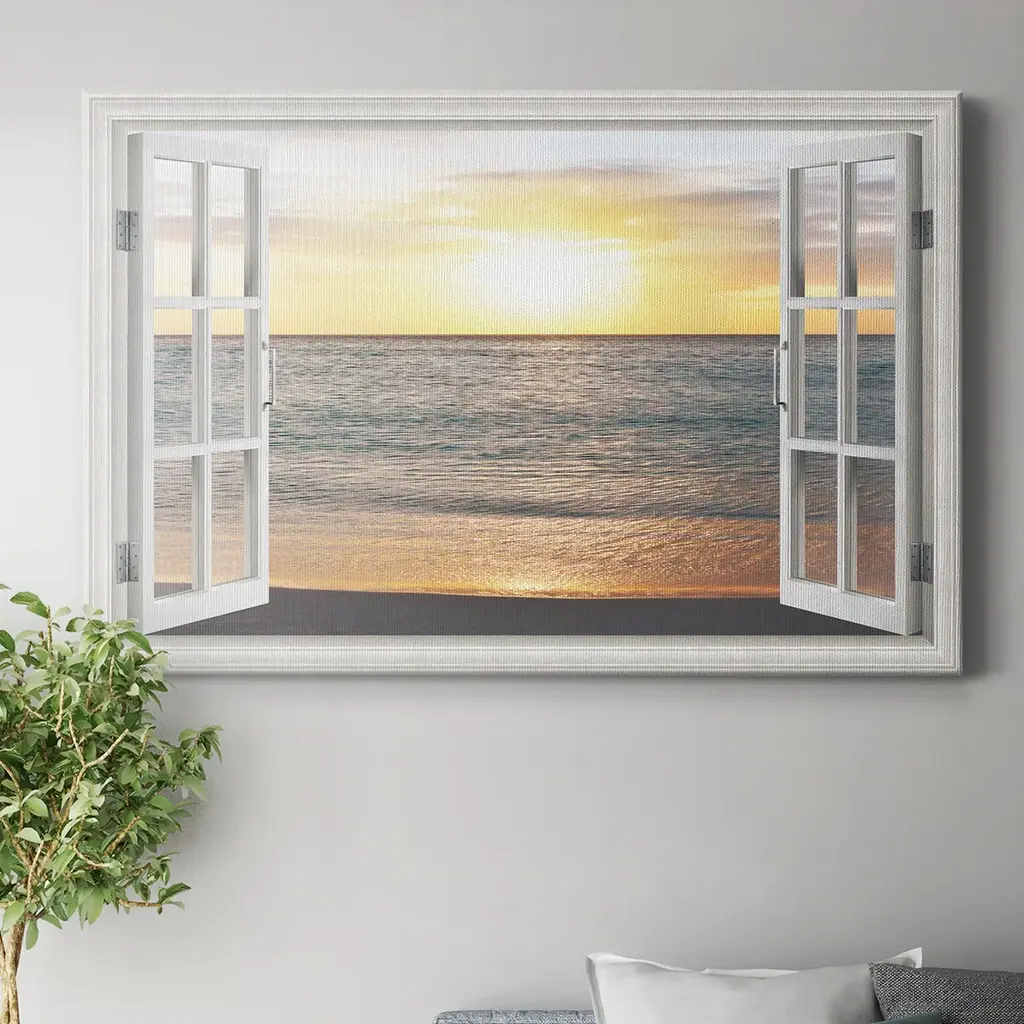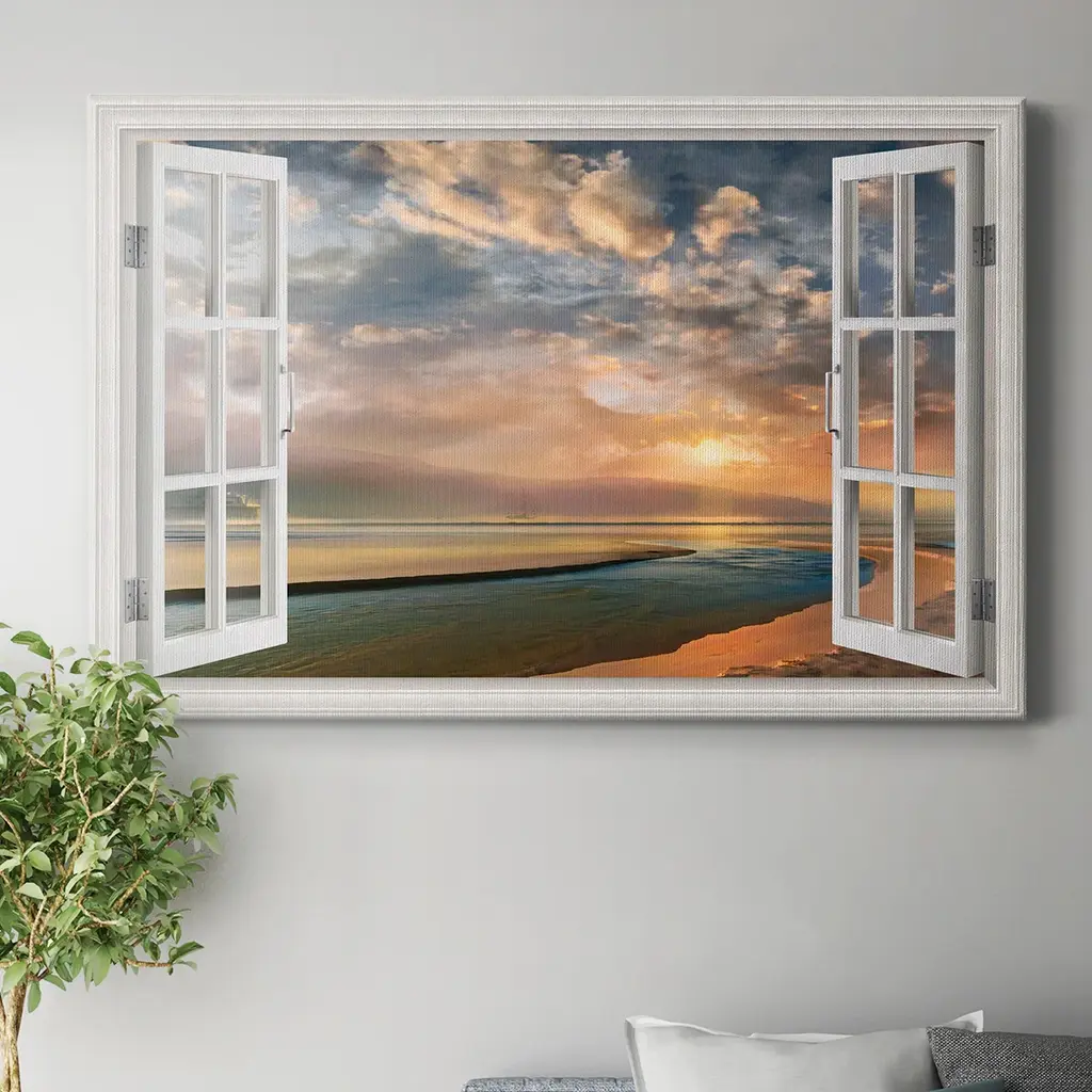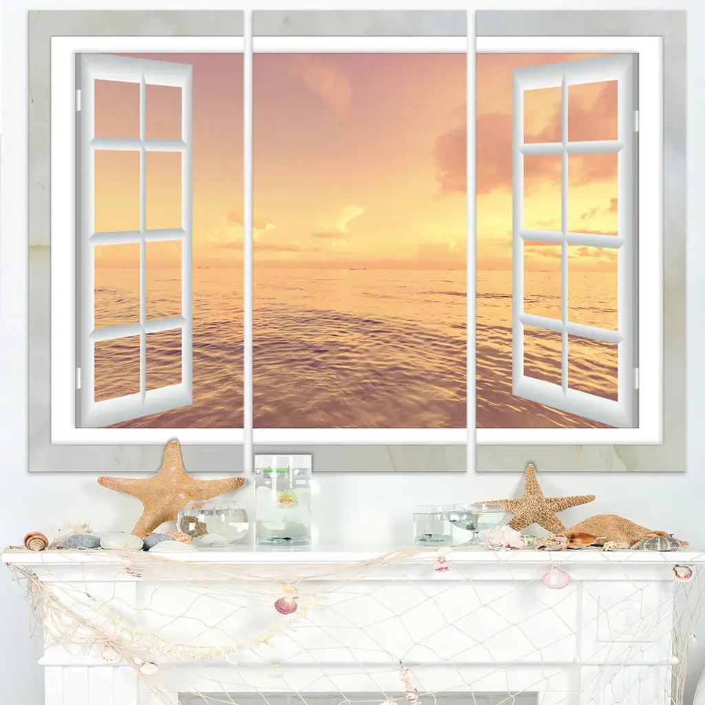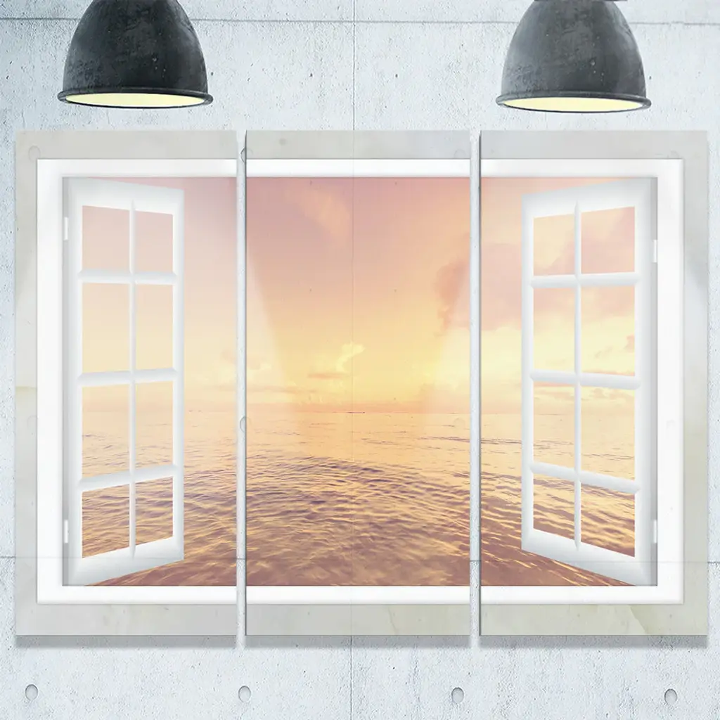 "Open Window To Brown Seashore" Metal Wall Art, 3 Panels, 36"x28"