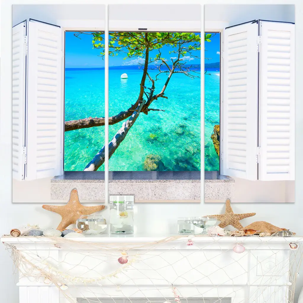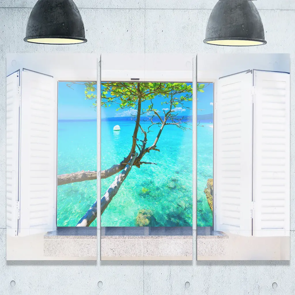 "Open Window To Gorgeous Seashore" Metal Wall Art, 3 Panels, 36"x28"