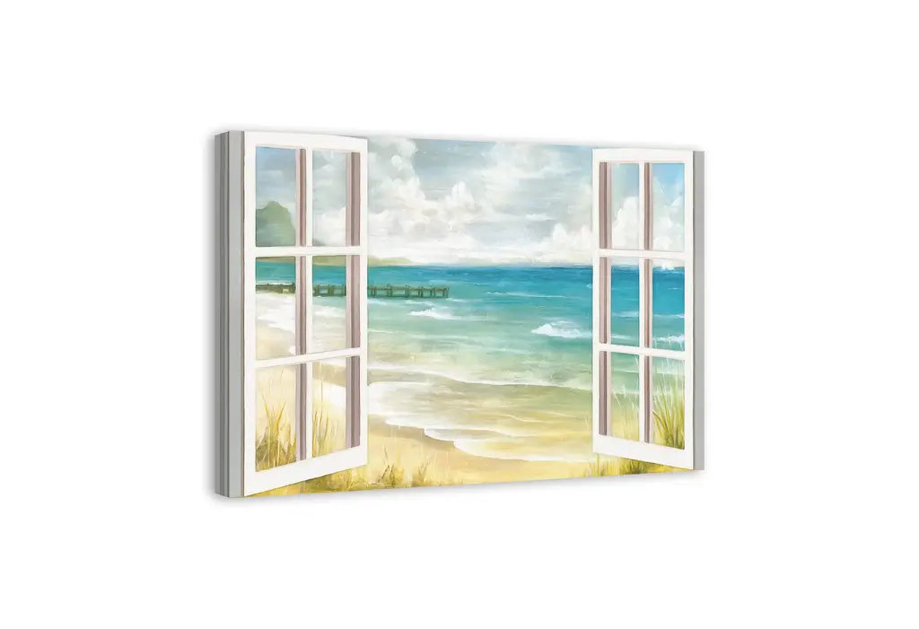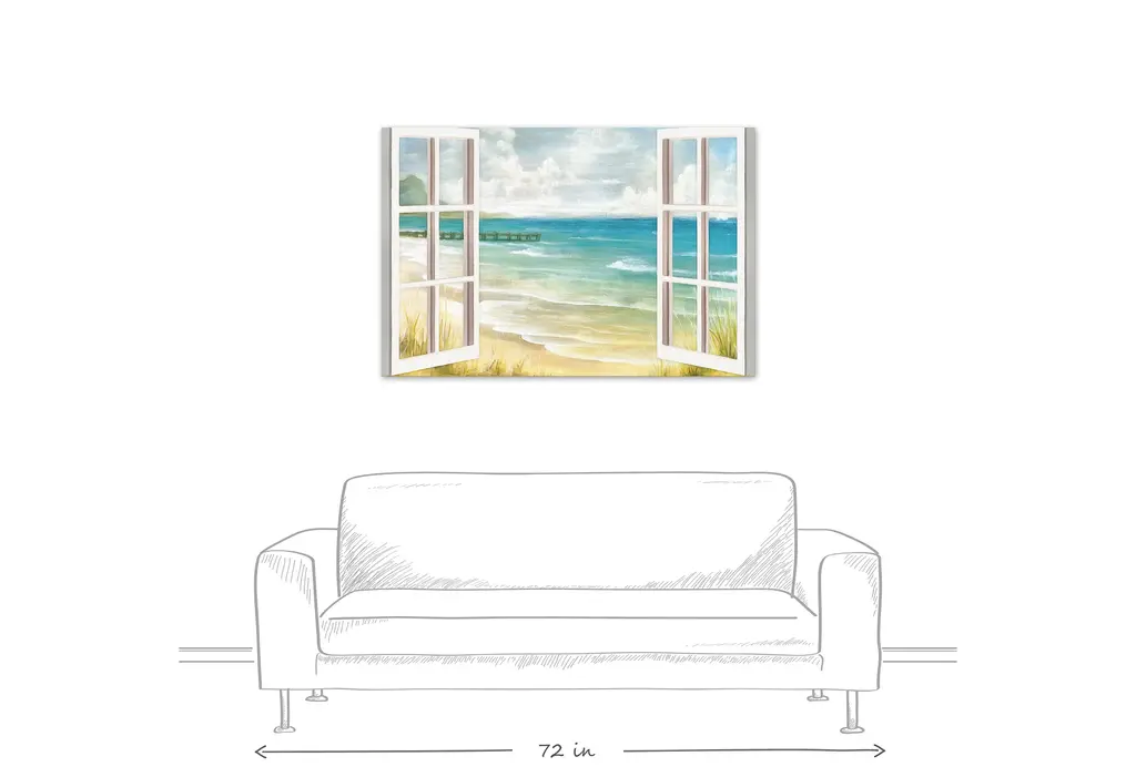 The Open Windows to Beach Paradise Canvas Art Print features a view of a beach seascape from inside a beach house. This coastal wall art helps you show off your style in your home. All our wall art comes ready to hang. The result is a beautiful piece of artwork worthy of showcasing in your home or beach house.