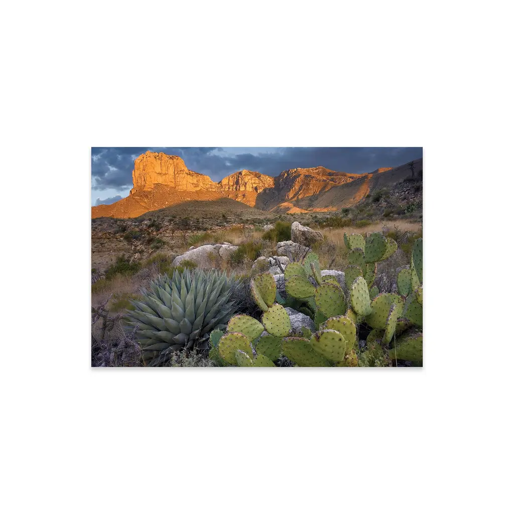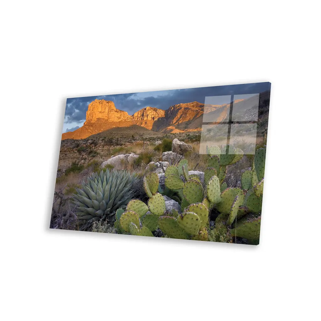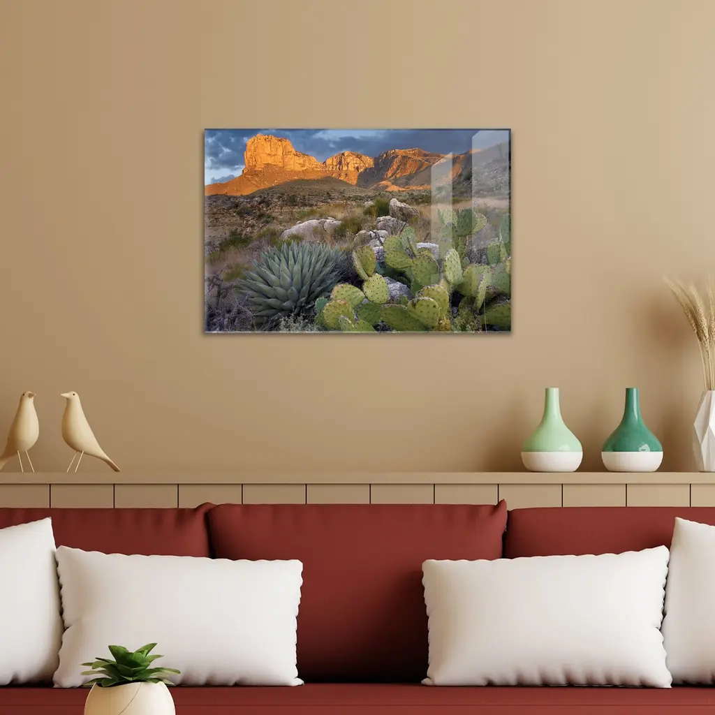 Opuntia Cactus And Agave Near El Capitan, Guadalupe Mountains National Park, Texas Print On Acrylic Glass By Tim Fitzharris - 16x24x0.25