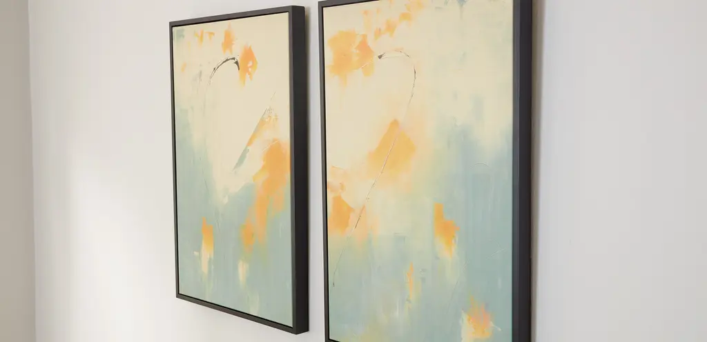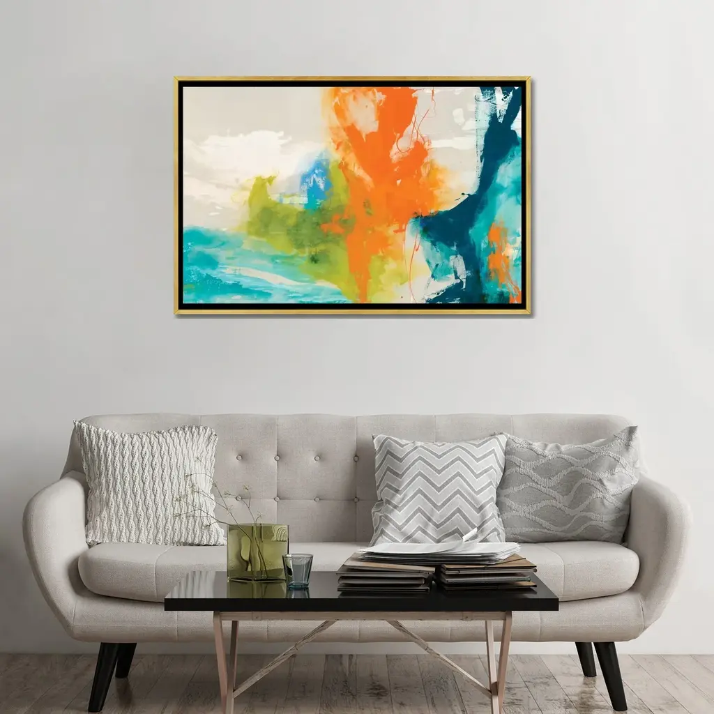 Splashes of orange capture summer's warmth on a background of cream and teal. Skilled artists hand embellish this piece with added texture to emulate each flower petal's softness. These simple, impressionist florals add a pop of color in casual or formal spaces.