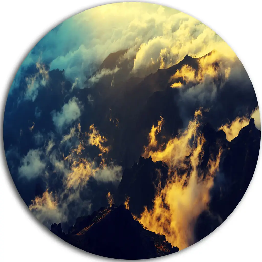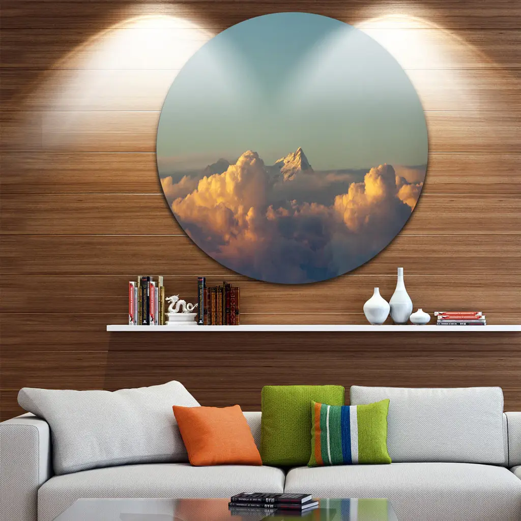 Bring Contemporary Abstraction to your home with this large Circle Metal wall art. This Orange Clouds Colorful Sunset in Sky Metal Artwork makes it the focal point of any room or office. - White Gloss Coating ensures colors are extra vibrant with light reflection.- Aluminum grade Sheet Metal with 1 inch mounting frame on the back giving the illusion that the artwork is floating on the wall..- Mounting Brackets are included along with instructions.- High Quality Digital images are created directly into a glossy aluminum panel producing a stunning and captivating print into the glossy finish of the metal.- Water, Fire and Scratch resistant HD Aluminum panels.- Looks better than any photo paper and guaranteed to last at least 20 years- Easy to clean with a microfiber cloth. Colors are far superior to regular Canvas Art. - Easy to Hang