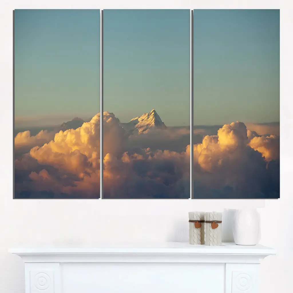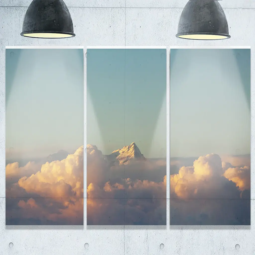 "Orange Clouds Colorful Sunset In Sky" Metal Landscape, 3 Panels, 36"x28"