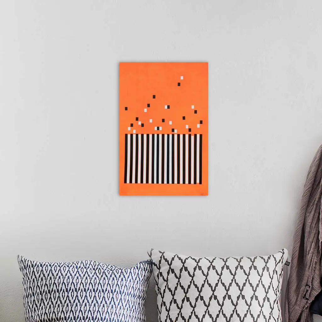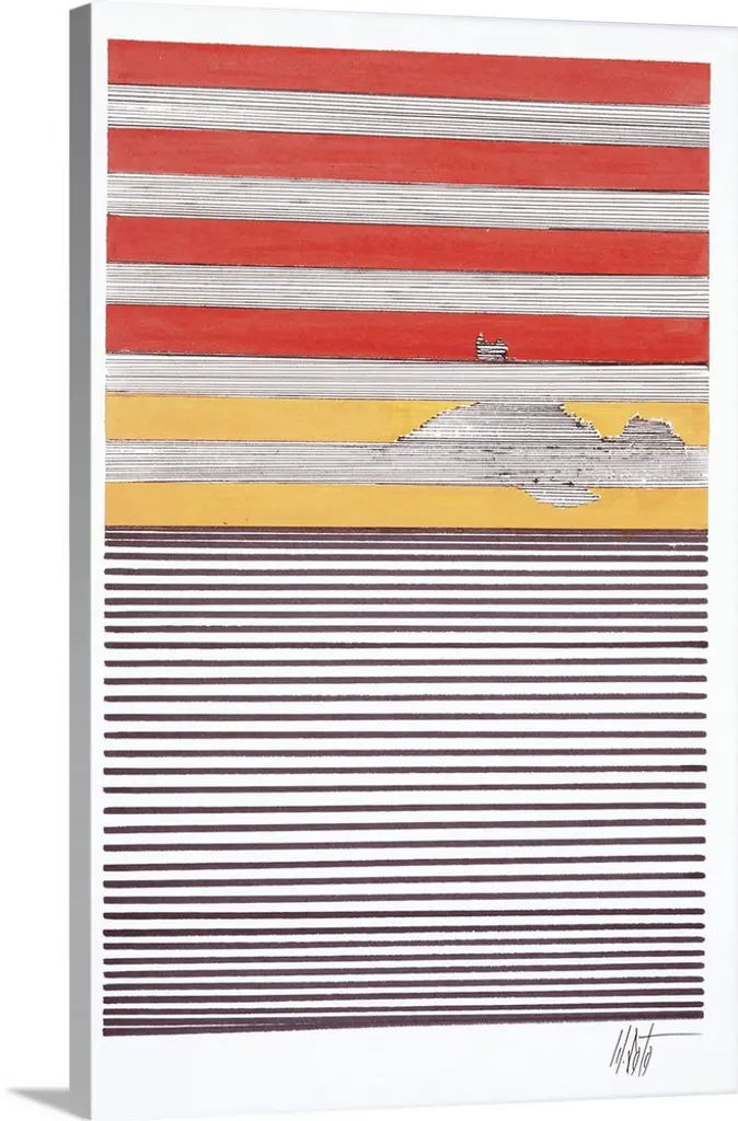 Abstract expression painting in which geometric color and lines invade the space in contrast with different elements: light, shadows, shape, texture and movement.