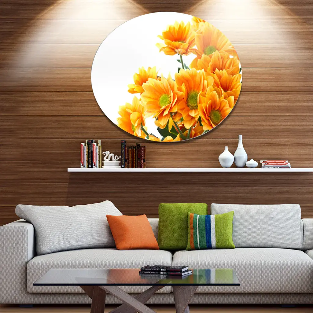 Orange Flowers Chrysanthemum, Modern Flower Round Metal Wall Art, 11"