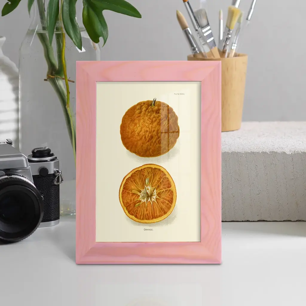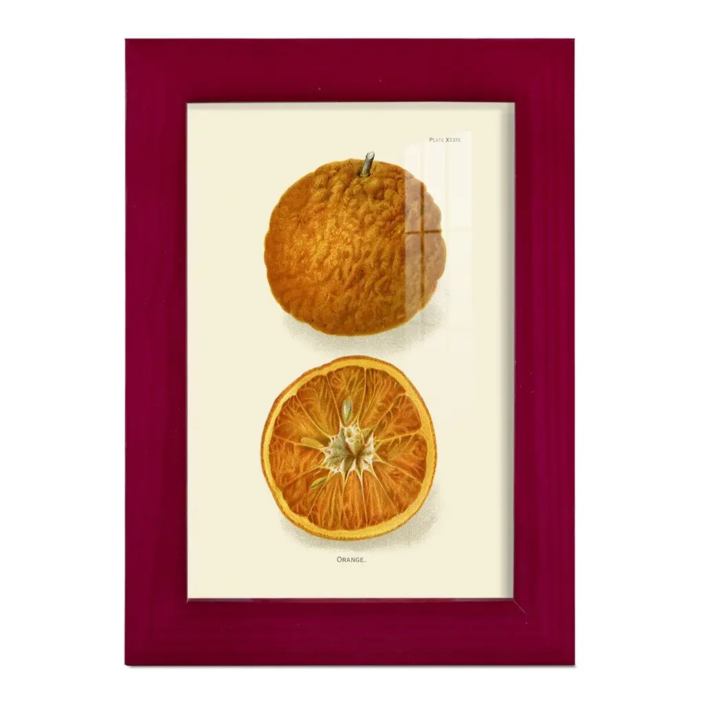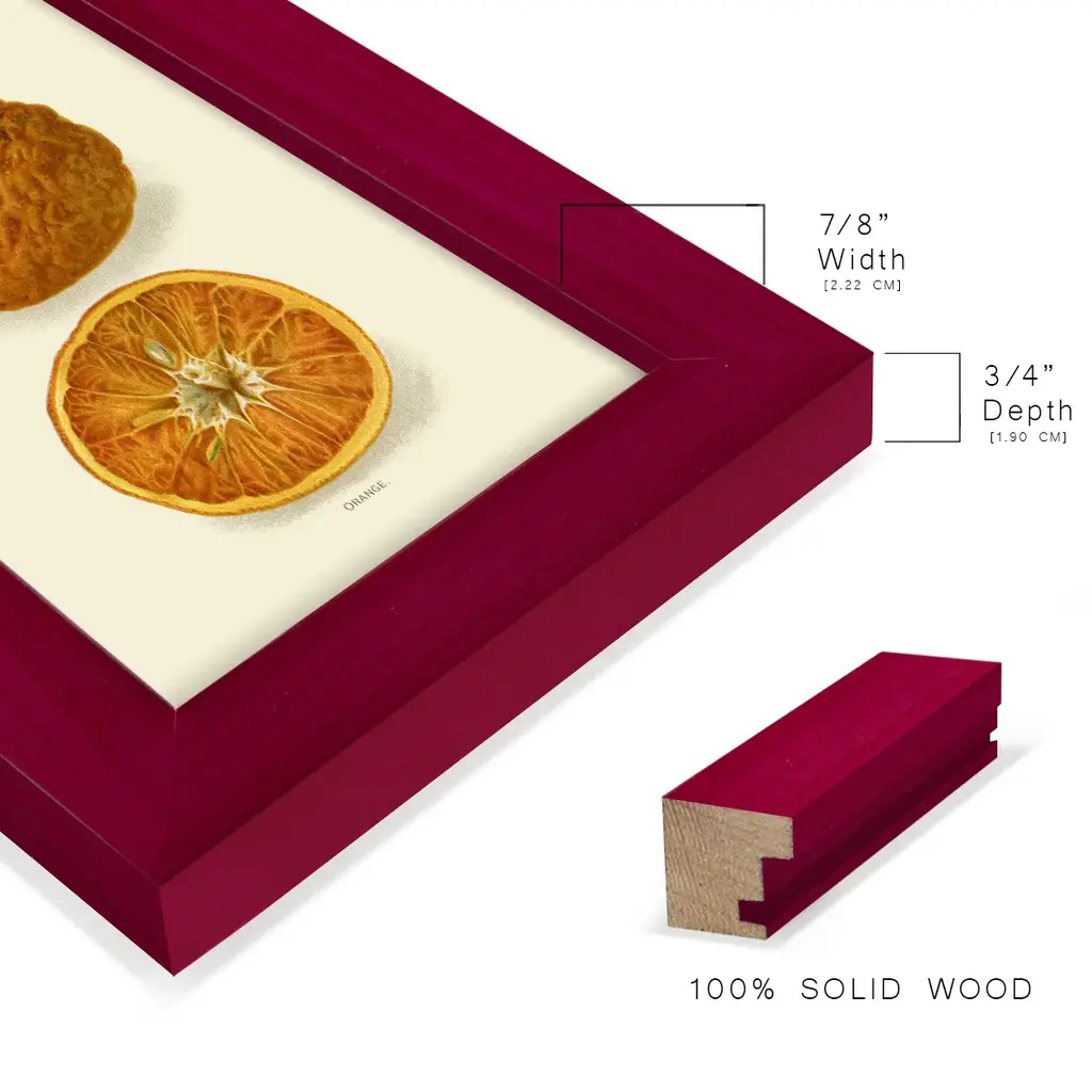 Orange -EZ SWITCH Framed Print w/glass-Cherry Red A delightful, framed print. Featuring a solid wood frame with real wood glass. This premium print is giclee quality. In addition, every frame features a removable back and table top stand. This allows you to change your art in the future or to just stand the art on a table for a new look. We are sure you'll enjoy our new series of EZ SWITCH Framed Art. Solid Wood Frame Real Glass Removable / Replaceable Art Built in Tabletop Stand Sizes range from 4x6 up to 12x15 - buy just one or pair them up as sets as you see fit.