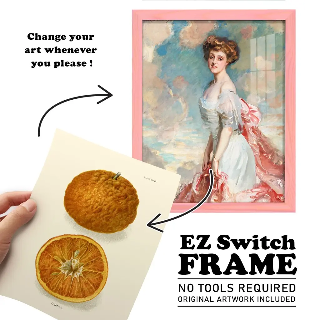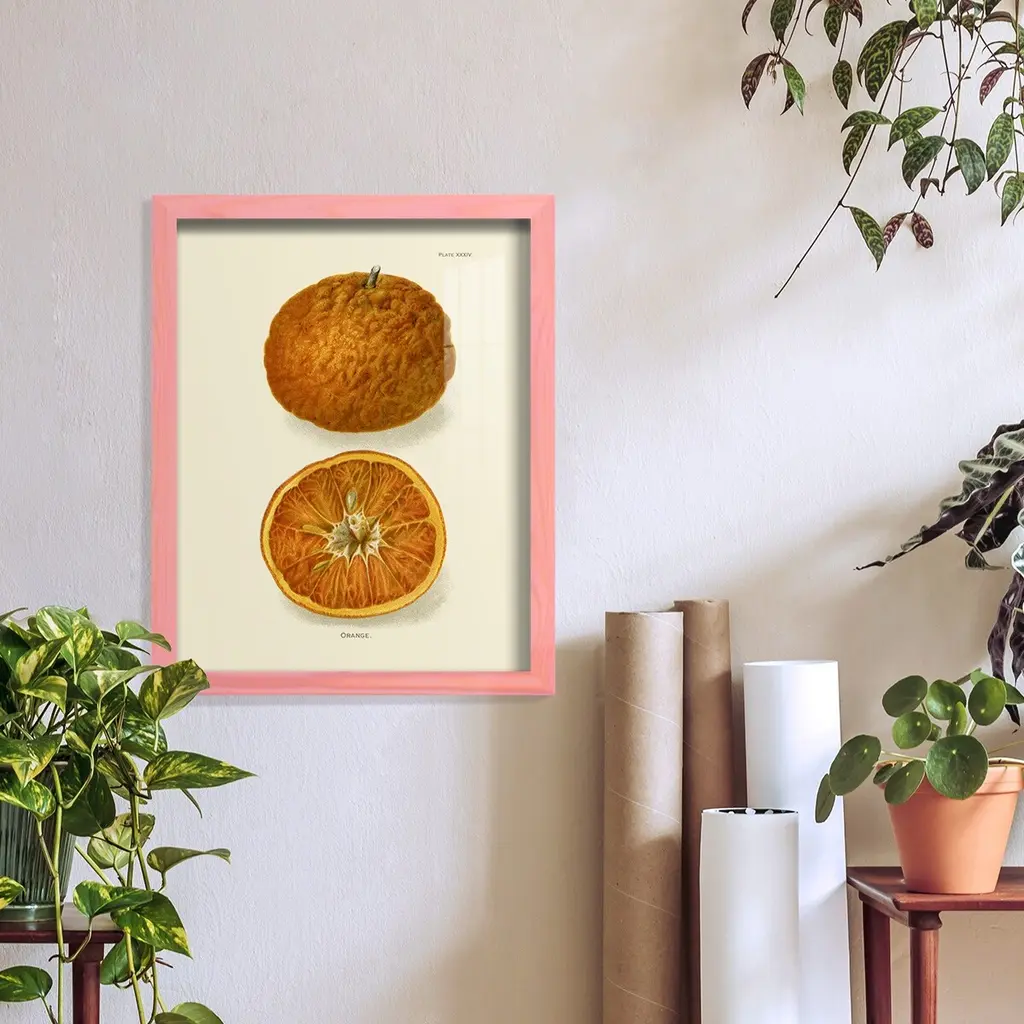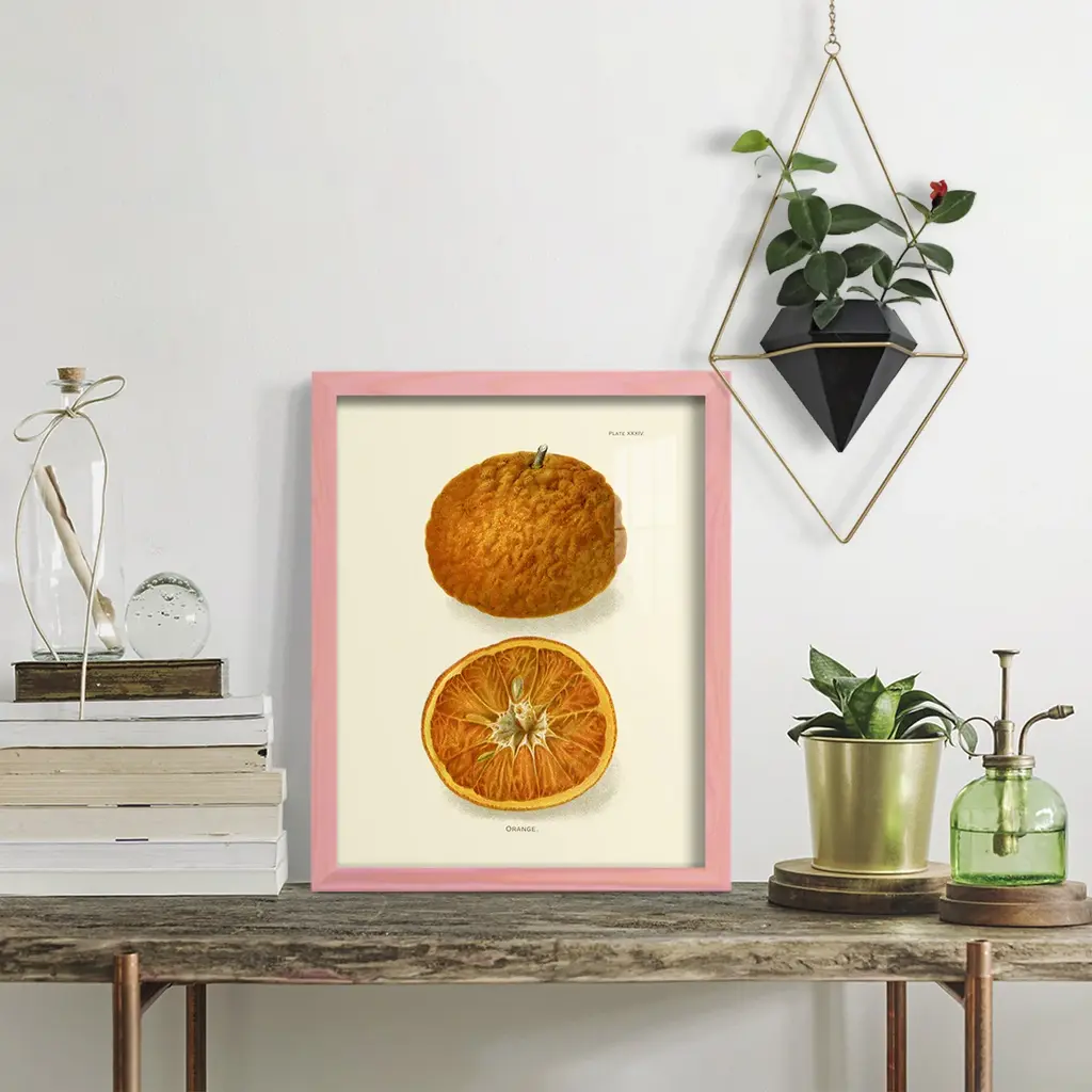 Orange -EZ SWITCH Framed Print w/glass-Cherry Red A delightful, framed print. Featuring a solid wood frame with real wood glass. This premium print is giclee quality. In addition, every frame features a removable back and table top stand. This allows you to change your art in the future or to just stand the art on a table for a new look. We are sure you'll enjoy our new series of EZ SWITCH Framed Art. Solid Wood Frame Real Glass Removable / Replaceable Art Built in Tabletop Stand Sizes range from 4x6 up to 12x15 - buy just one or pair them up as sets as you see fit.