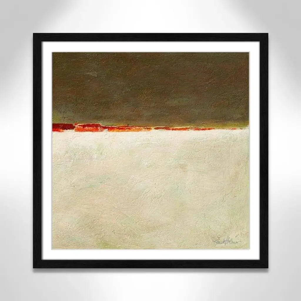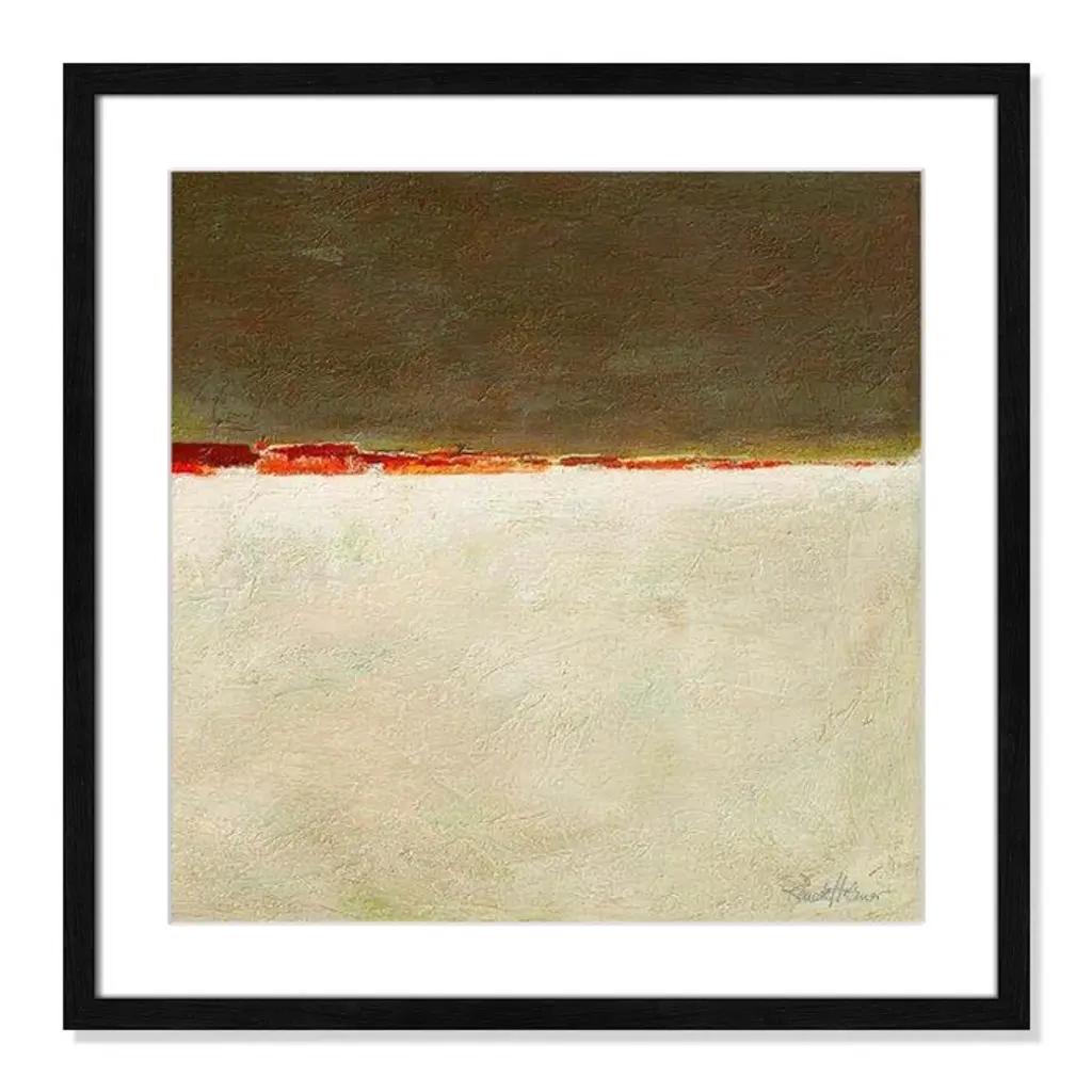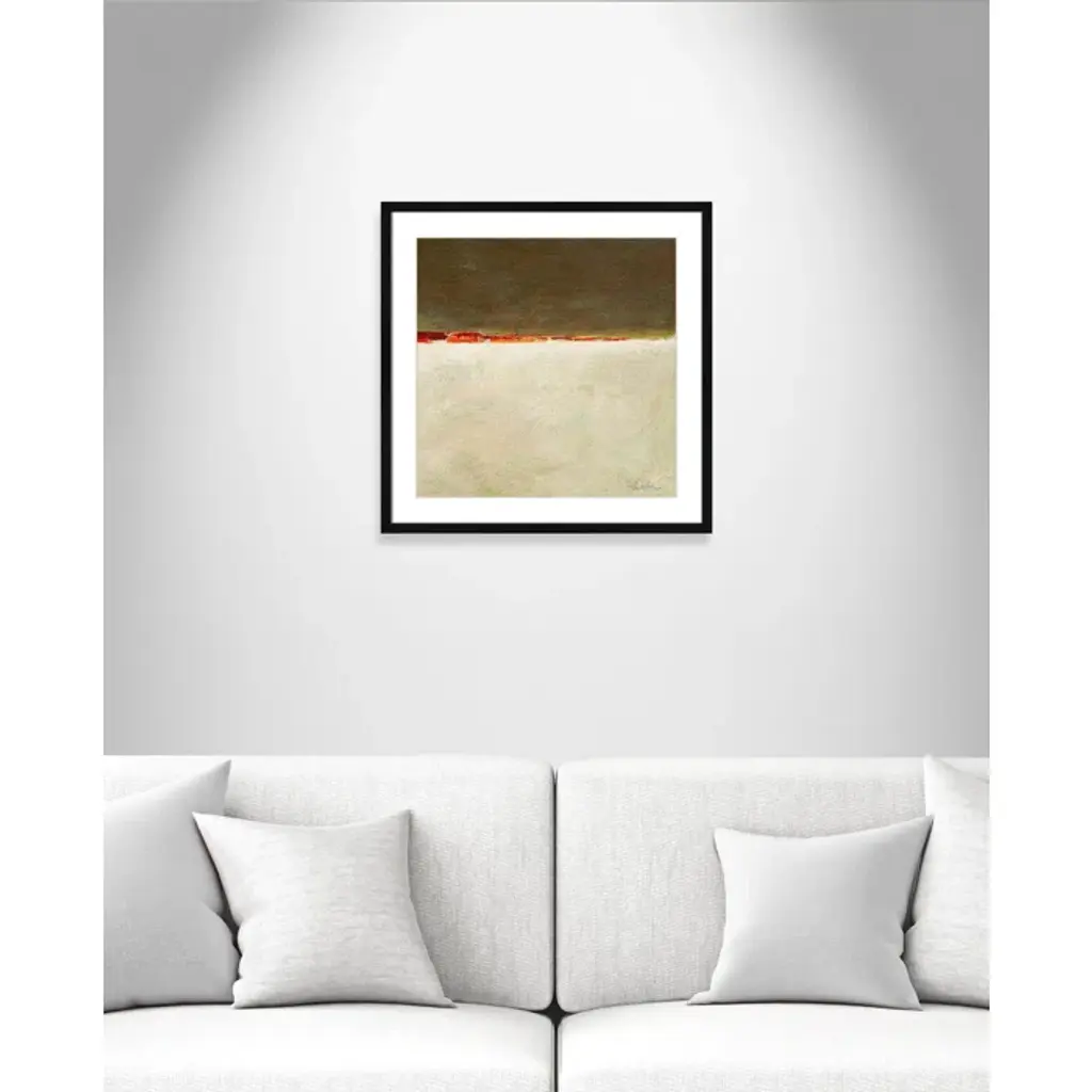 "Orange Horizon" by Renate Holzner is your ticket to a home that's as unique as you are! This square framed print is set in a closed corner, solid wood picture frame for a polished, gallery-worthy look. It showcases an abstract landscape that adds a subtle hint of color to your space. The giclee print technique ensures a high-quality image that's rich in detail. Plus, it's ready to hang, making it a breeze to bring a bit of artistic flair into your home or office.