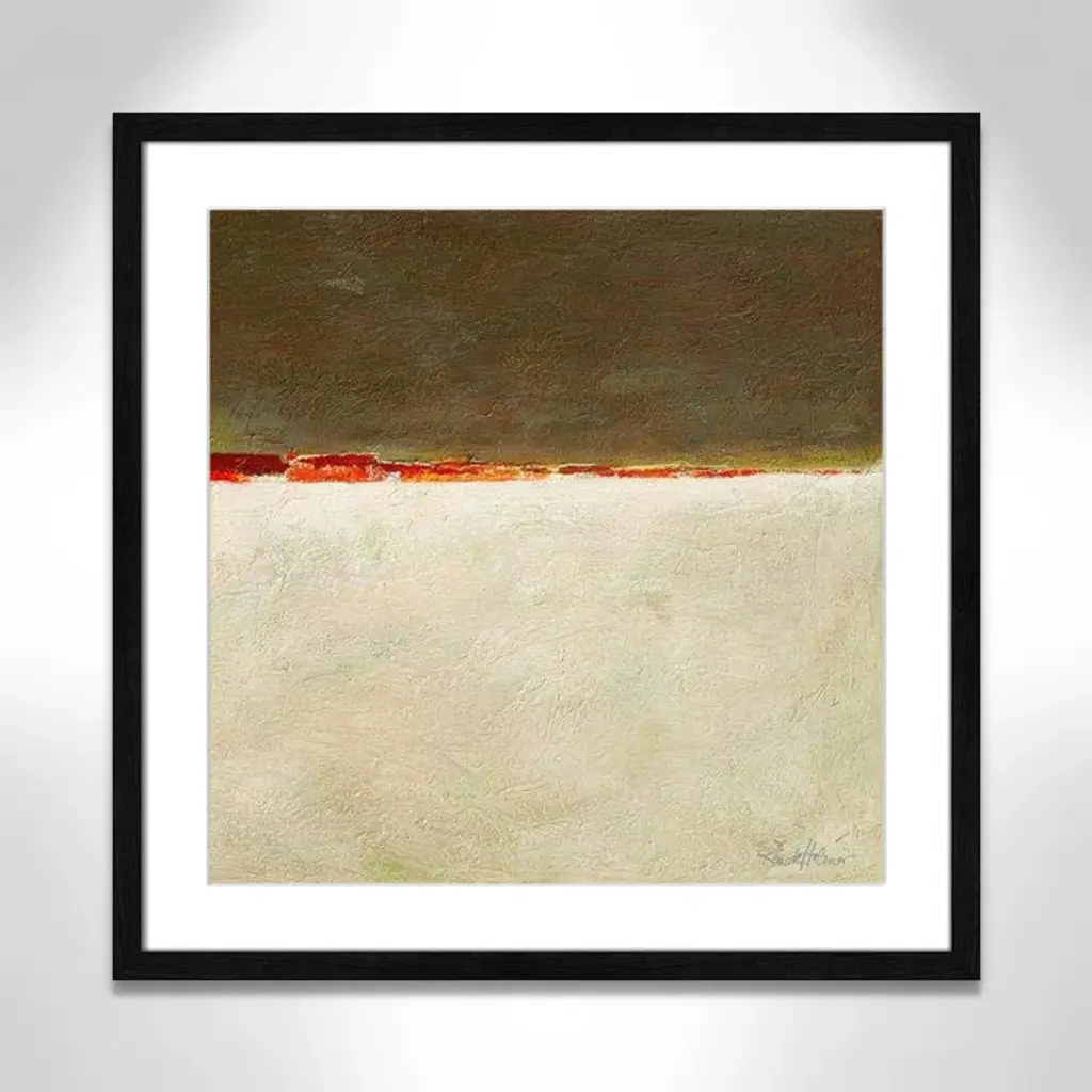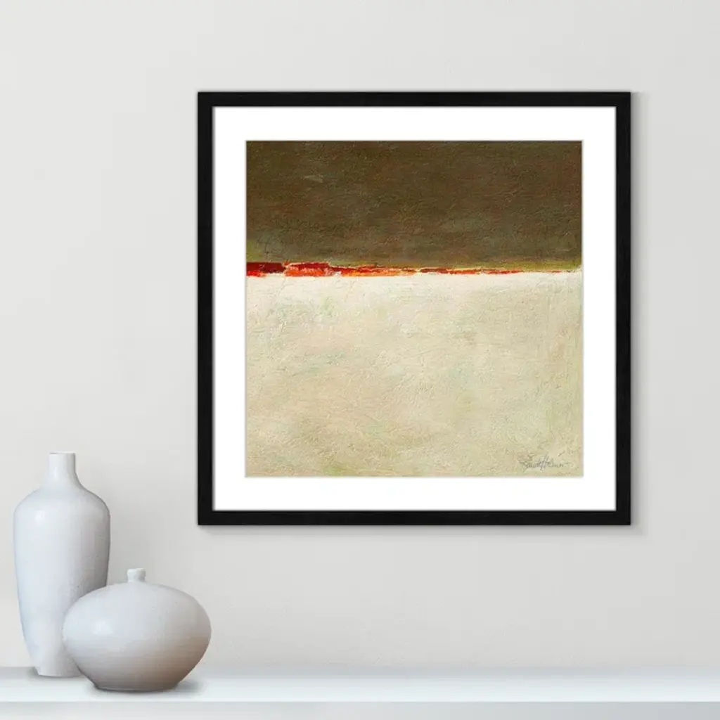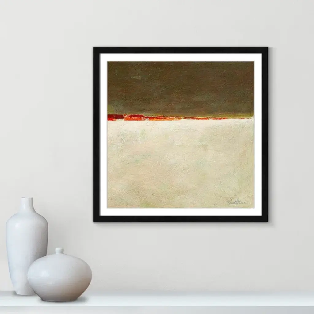 "Orange Horizon" by Renate Holzner is your ticket to a home that's as unique as you are! This square framed print is set in a closed corner, solid wood picture frame for a polished, gallery-worthy look. It showcases an abstract landscape that adds a subtle hint of color to your space. The giclee print technique ensures a high-quality image that's rich in detail. Plus, it's ready to hang, making it a breeze to bring a bit of artistic flair into your home or office.