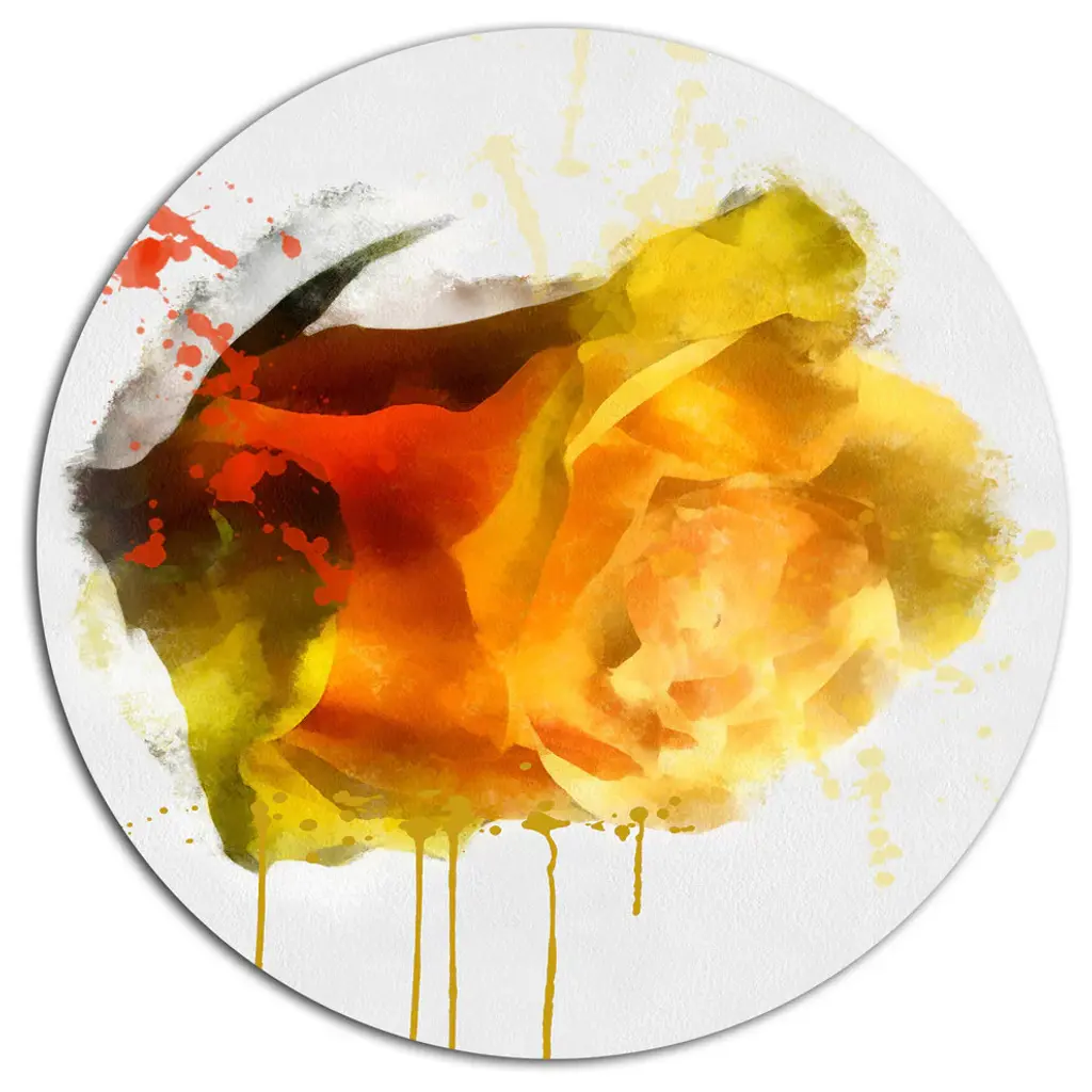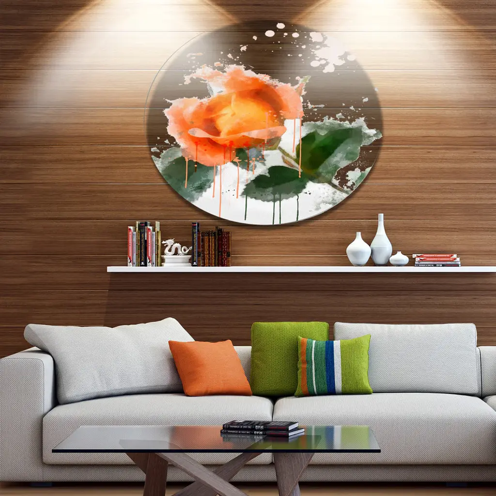 Bring Contemporary Abstraction to your home with this large Circle Metal wall art. This Orange Rose Sketch Watercolor Metal Artwork makes it the focal point of any room or office. - White Gloss Coating ensures colors are extra vibrant with light reflection.- Aluminum grade Sheet Metal with 1 inch mounting frame on the back giving the illusion that the artwork is floating on the wall..- Mounting Brackets are included along with instructions.- High Quality Digital images are created directly into a glossy aluminum panel producing a stunning and captivating print into the glossy finish of the metal.- Water, Fire and Scratch resistant HD Aluminum panels.- Looks better than any photo paper and guaranteed to last at least 20 years- Easy to clean with a microfiber cloth. Colors are far superior to regular Canvas Art. - Easy to Hang