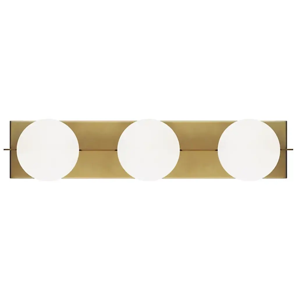 The Orbel Vanity Light from Visual Comfort Modern, formerly known as Tech Lighting, takes on a familiar mid-century modern aesthetic and slightly tweaks it in order to upgrade it to meet contemporary standards. The fixture’s simplistic profile features a rectangular metallic base from which 3 stacked frosted spheres are supported. The fixture achieves a total length of 24 inches, which makes it ideally suited for modern bathrooms and powder rooms. When lit, the internal lamping radiates a soft and diffused light.