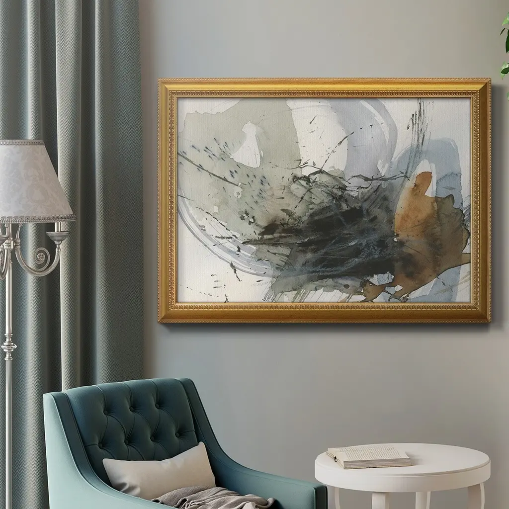 Orbital Burst I Premium Framed Canvas- Ready to Hang A Premium Framed Canvas created to last. Framed in distressed wood and available in an array of sizes and colors Featuring a beveled a solid wood stretcher bar, each piece comes ready to hand 3 SIZES AVAILABLE 16''X20'' - Overall Size 18'X27'' - Overall Size 24''x36'' - Overall Size Each piece is made to order. Each piece comes with hanging hardware. Made in the USA Ready to Hang Giclee Paper Print Acrylic Glass Beveled Matt Board
