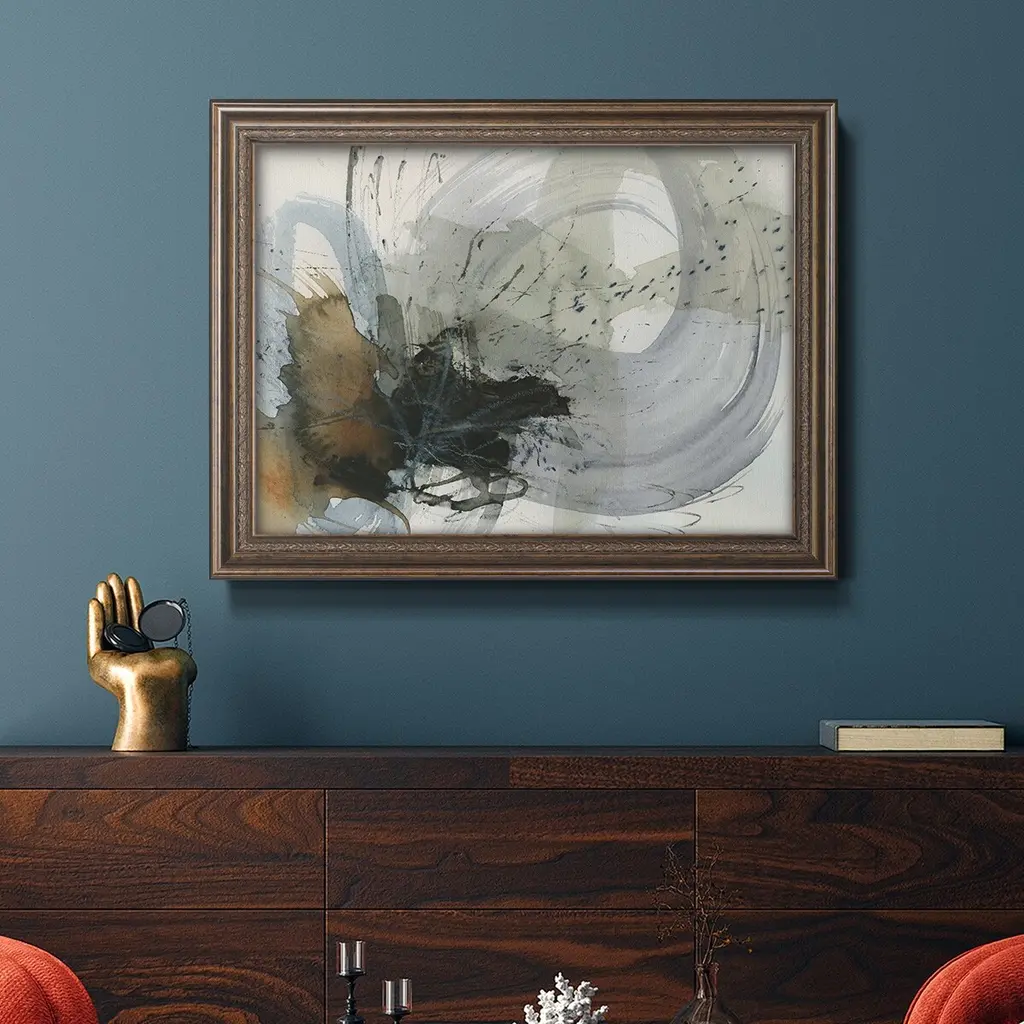 Orbital Burst II Premium Framed Canvas- Ready to Hang A Premium Framed Canvas created to last. Framed in distressed wood and available in an array of sizes and colors Featuring a beveled a solid wood stretcher bar, each piece comes ready to hand 3 SIZES AVAILABLE 16''X20'' - Overall Size 18'X27'' - Overall Size 24''x36'' - Overall Size Each piece is made to order. Each piece comes with hanging hardware. Made in the USA Ready to Hang Giclee Paper Print Acrylic Glass Beveled Matt Board