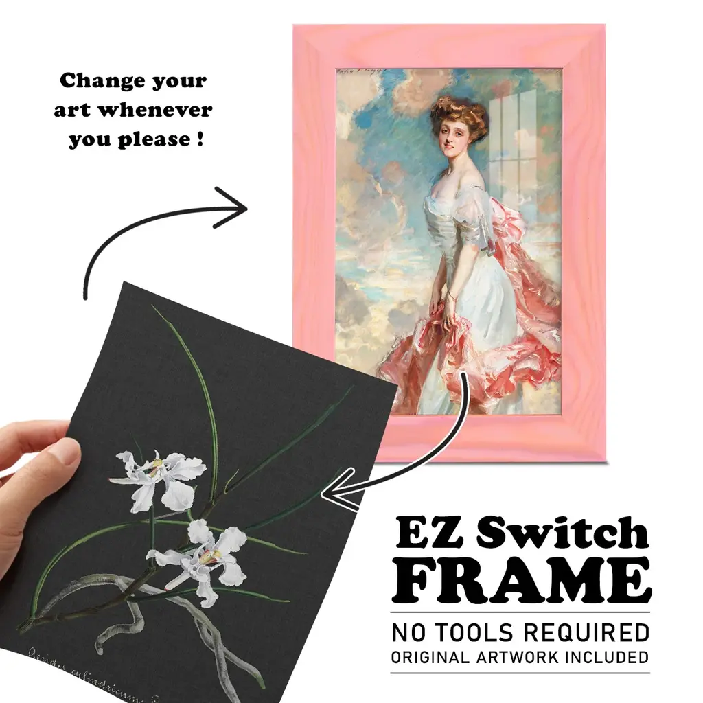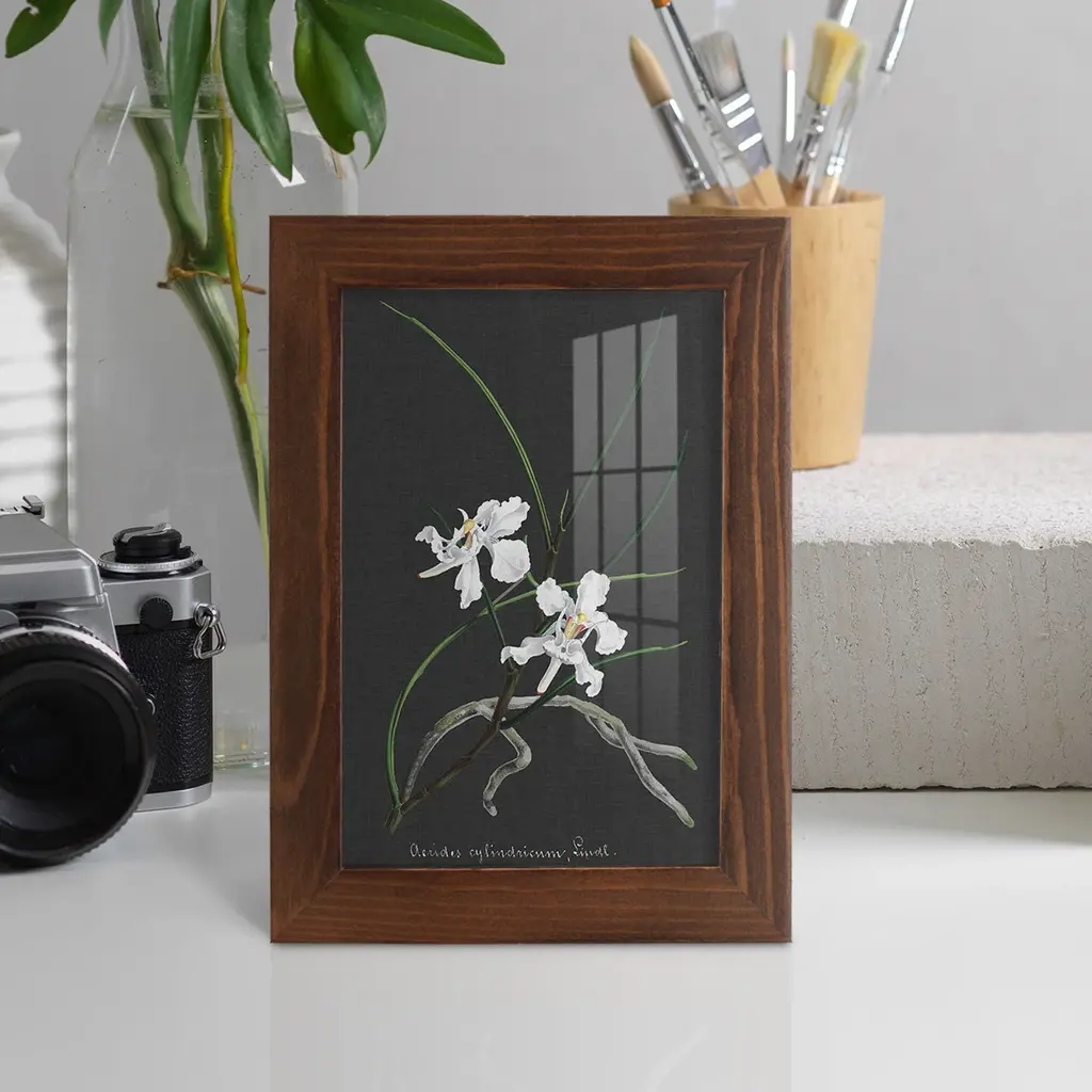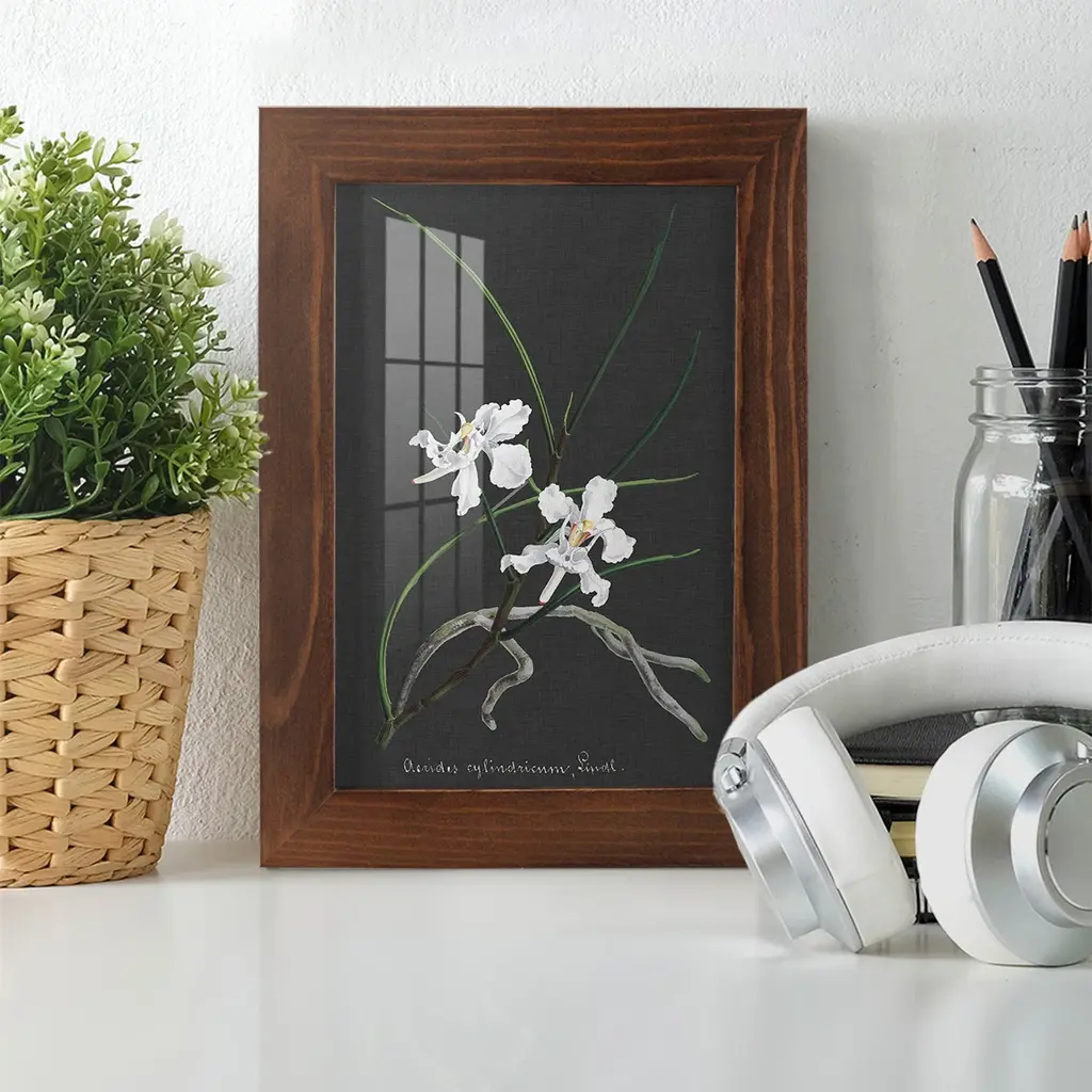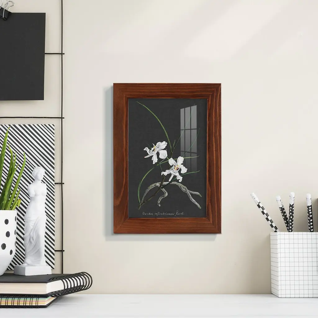 Orchid on Slate II -EZ SWITCH Framed Print w/glass-Cherry Red A delightful, framed print. Featuring a solid wood frame with real wood glass. This premium print is giclee quality. In addition, every frame features a removable back and table top stand. This allows you to change your art in the future or to just stand the art on a table for a new look. We are sure you'll enjoy our new series of EZ SWITCH Framed Art. Solid Wood Frame Real Glass Removable / Replaceable Art Built in Tabletop Stand Sizes range from 4x6 up to 12x15 - buy just one or pair them up as sets as you see fit.