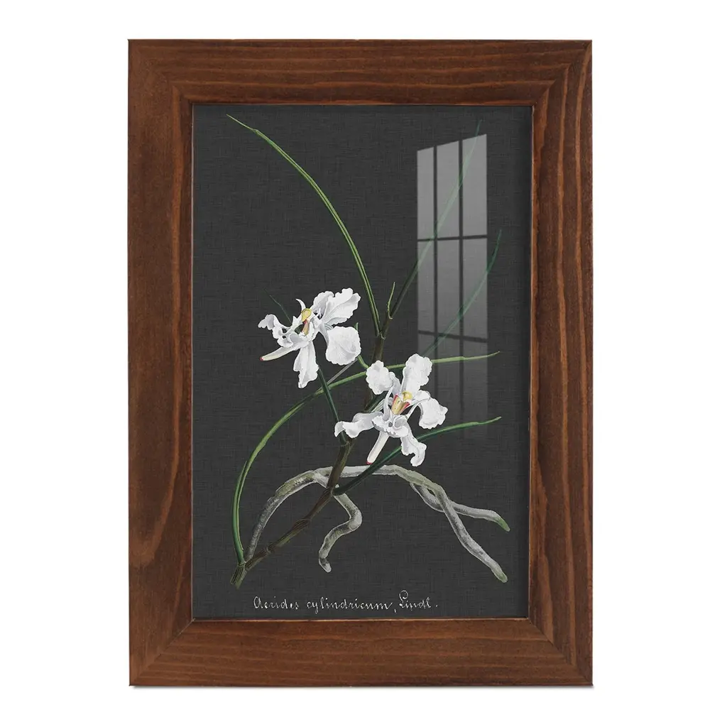 Orchid On Slate Ii -Framed Print W/glass-Cherry Red - 12x15 - Walnut